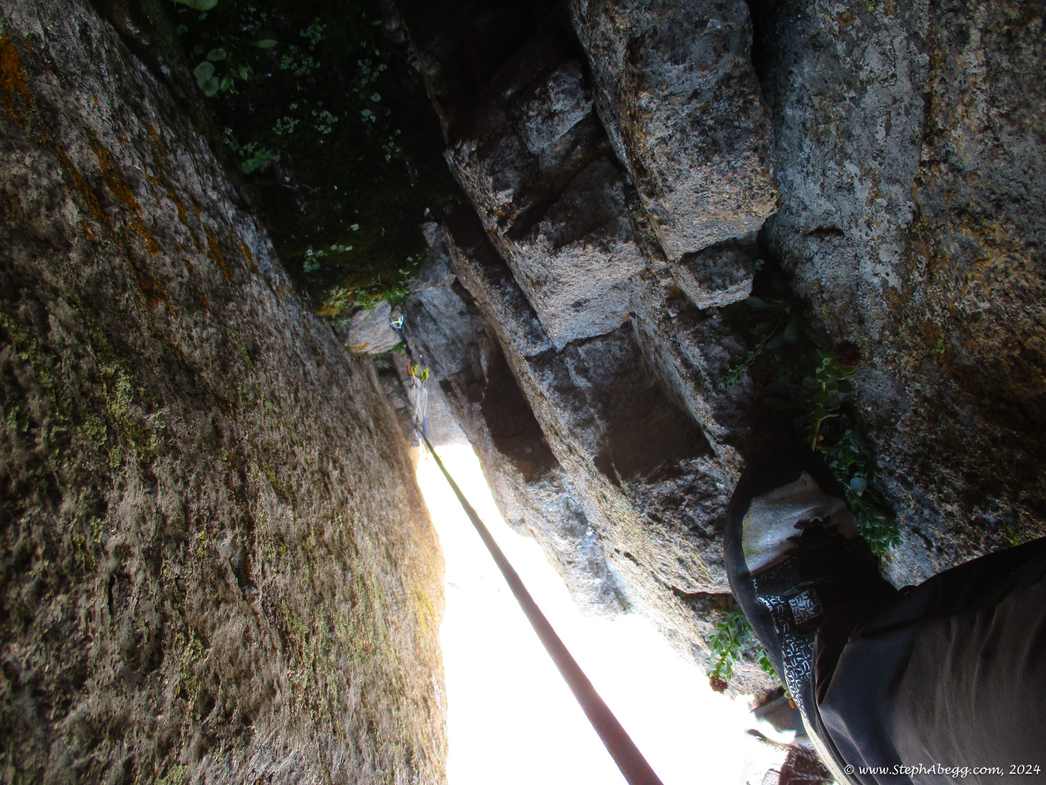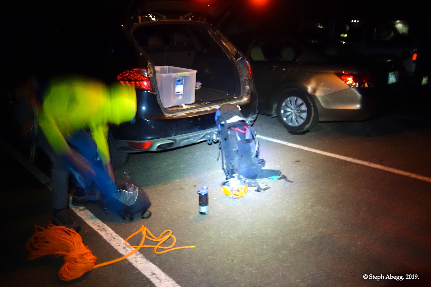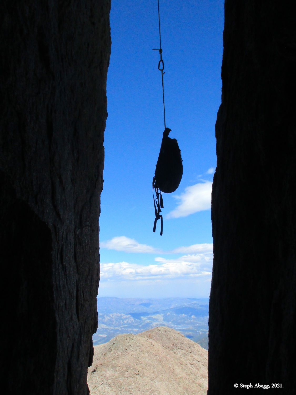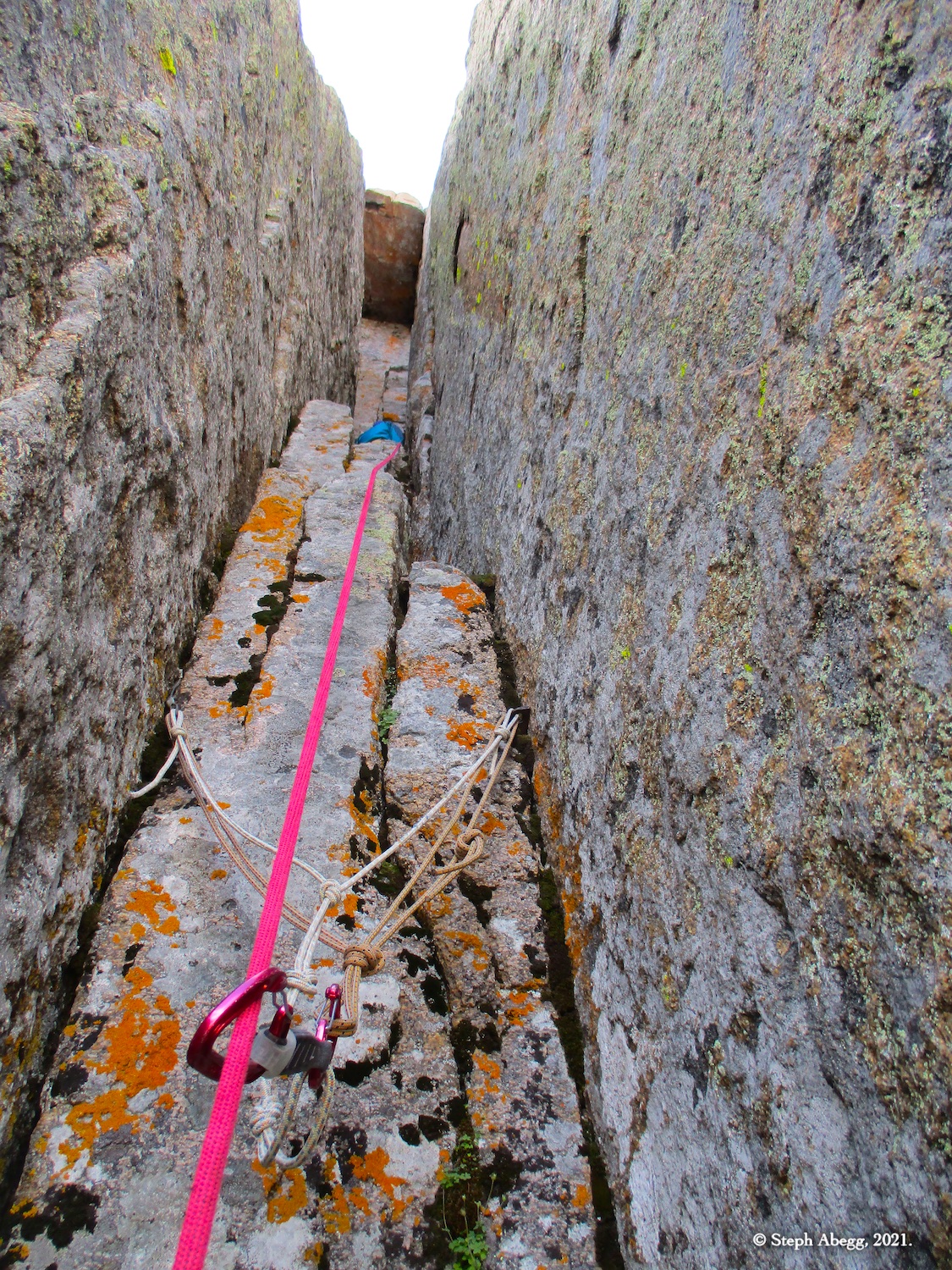 We left Boulder at 2:15 am and were on the trail by 3:29 am. Since Kishen had not used the Chasm View Rappels in years, we decided to approach via Chasm View, which avoids the North Chimney bowling alley. We were starting up the first pitch of