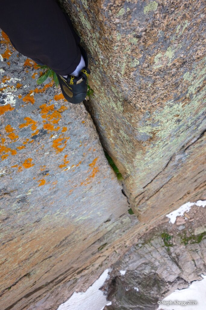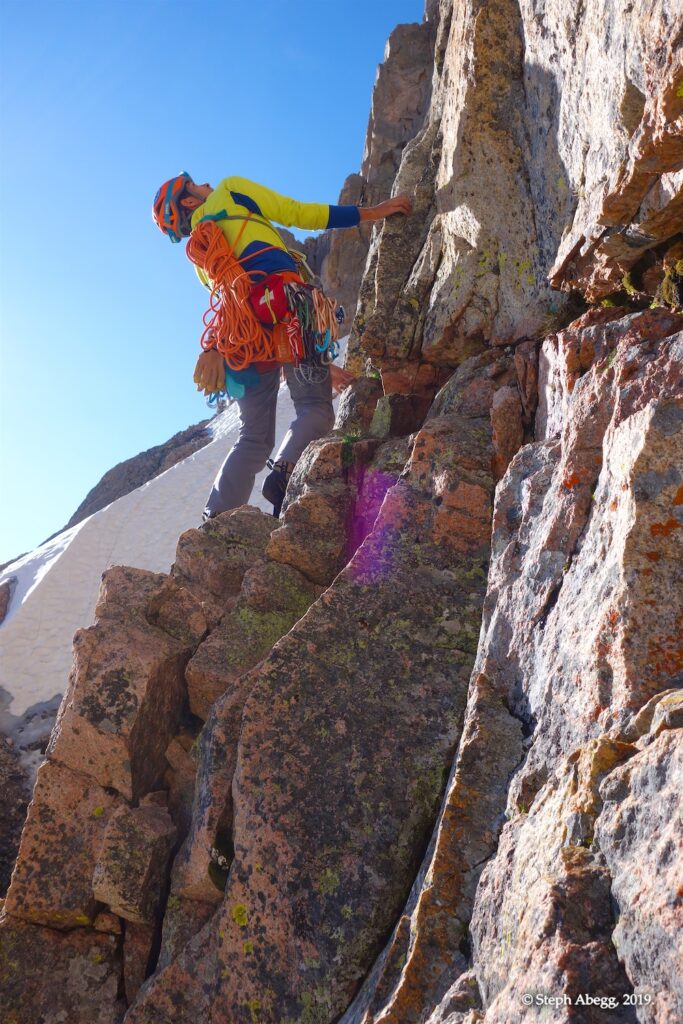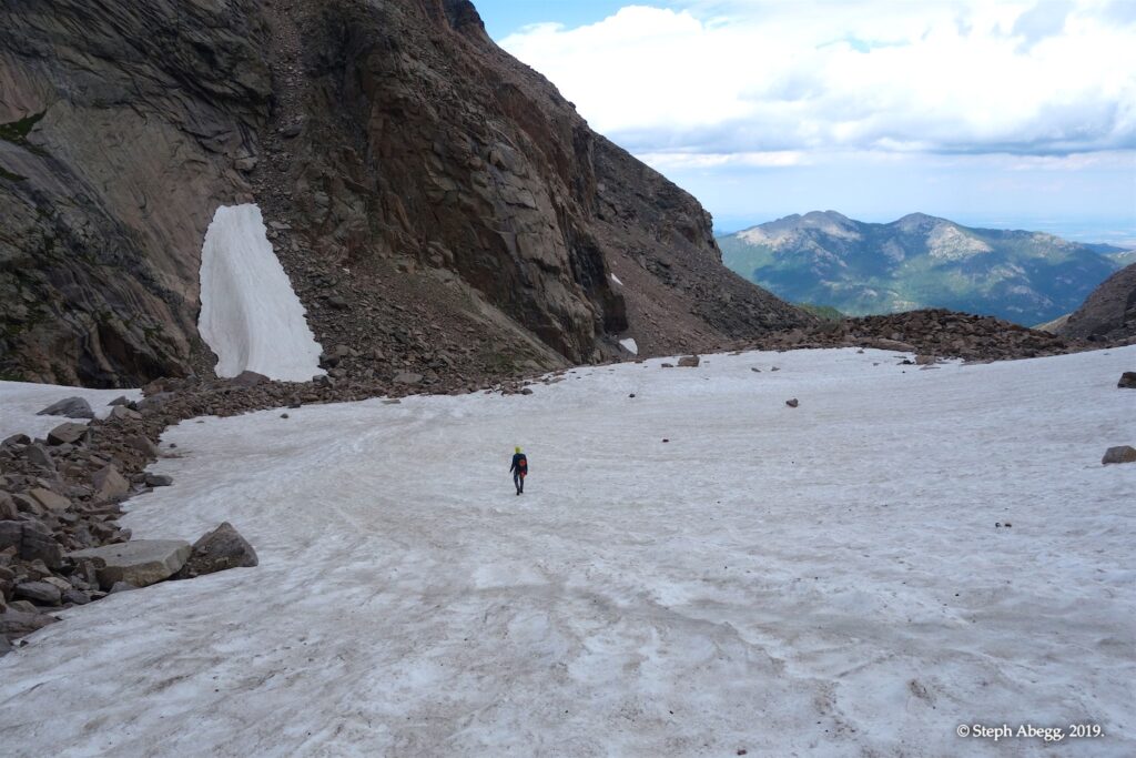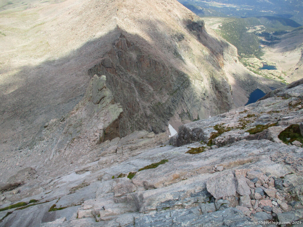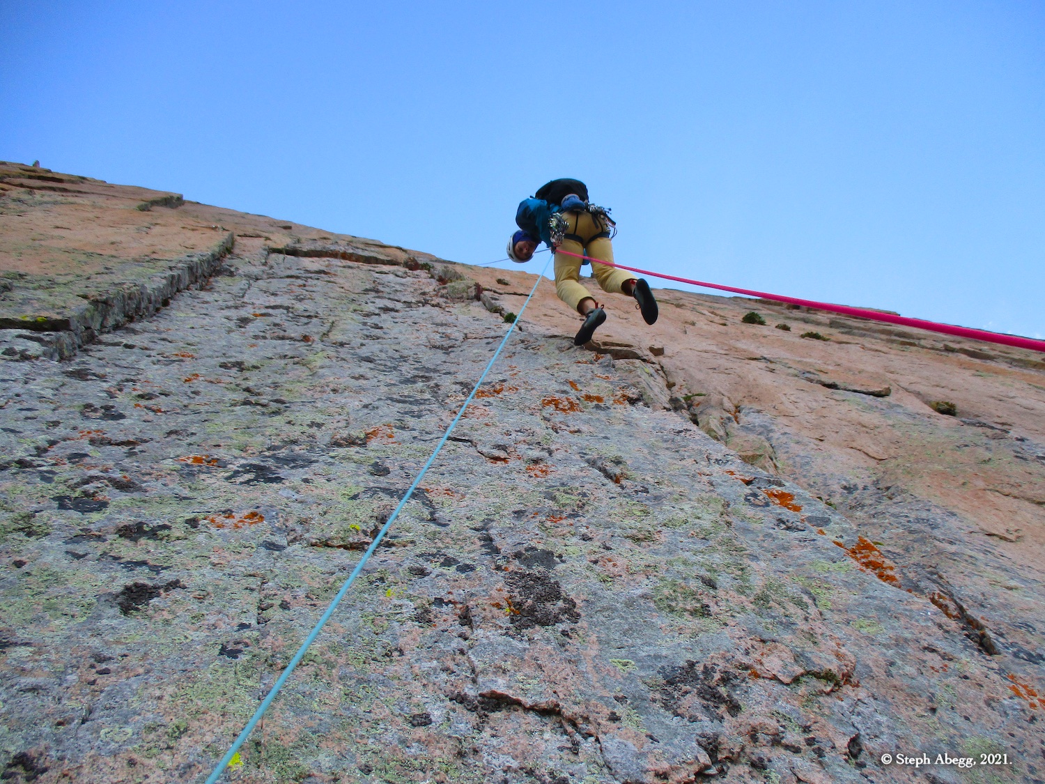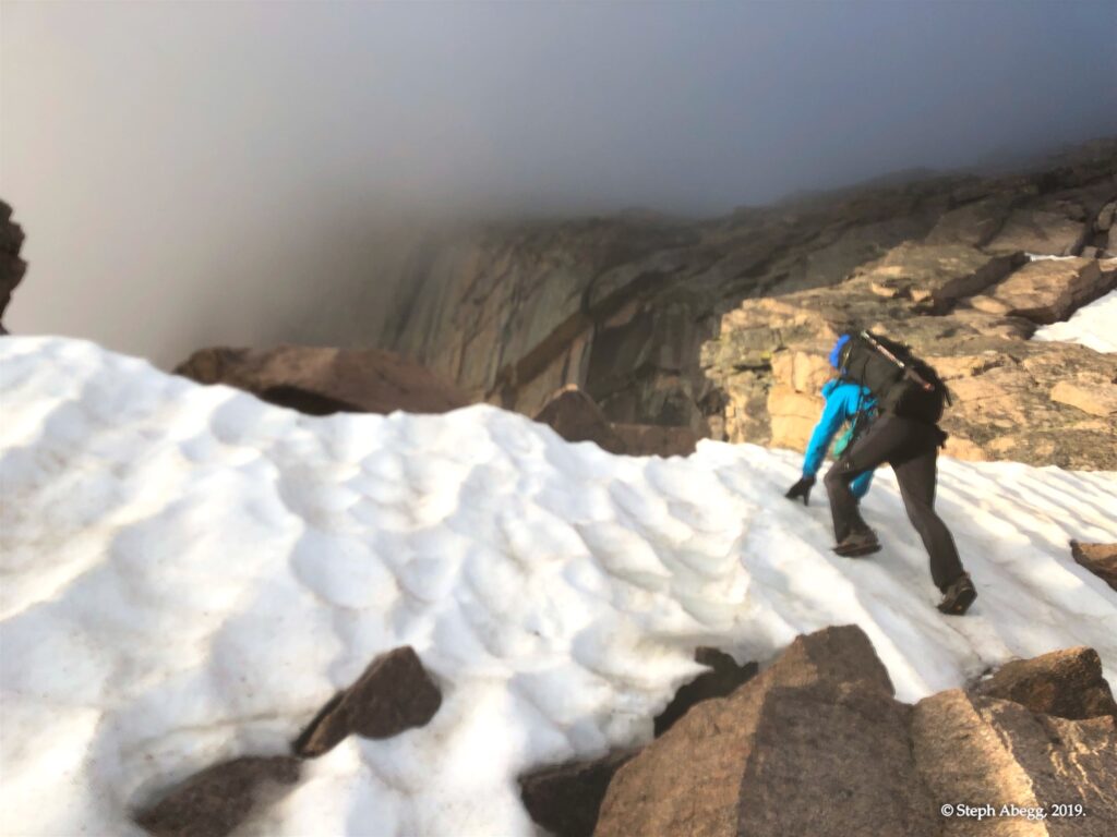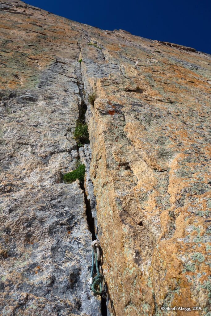 D7 five hours after we left the trailhead. And five hours after that, we were at the top of the route on Almost Table Ledge. The pitches were long with sustained difficulty and awesomeness. Nowhere else (that I've yet climbed at least) can you get hundreds of feet of vertical crack climbing up such a vast expanse of granite. Plus, it was pretty cool to be the only party climbing on the entire Diamond (there was one other party who started up Pervertical, but they bailed two pitches up). We descended via the Diamond Rappel Route, and were back in Boulder by 7:15pm. Due to an efficient pace, lack of crowds, dry rock, and no real issues to take up our time, we were car-to-car in 14.5 hours and Boulder to Boulder in 17 hours; Kishen has probably done it a bit faster, but this is my personal best car-to-car time for a single route so far. (2020 Update: Since this climb in 2019, I have climbed the Diamond several more times, and have gotten my car-to-car time to under 10 hours a couple of times.)