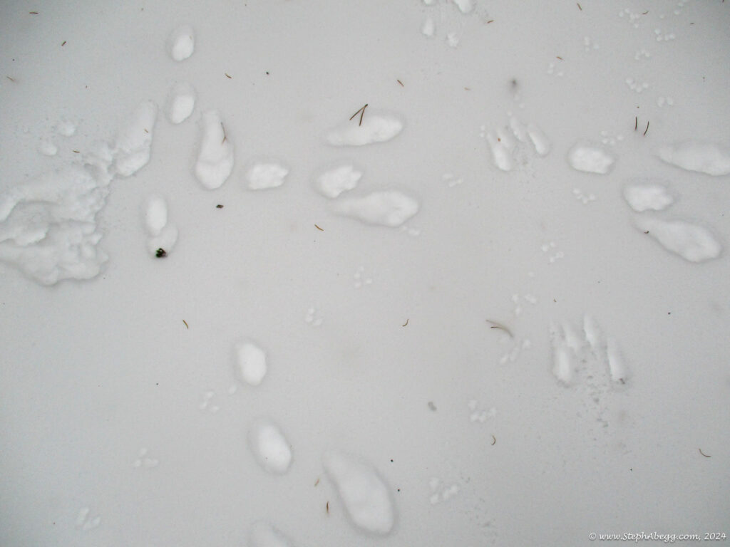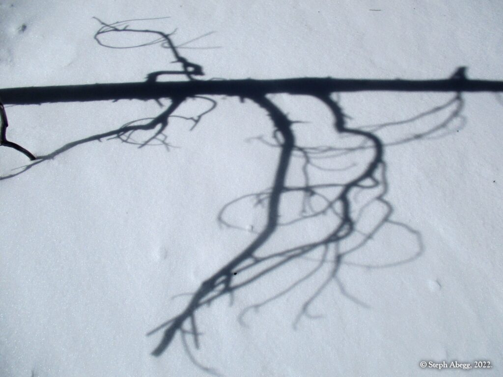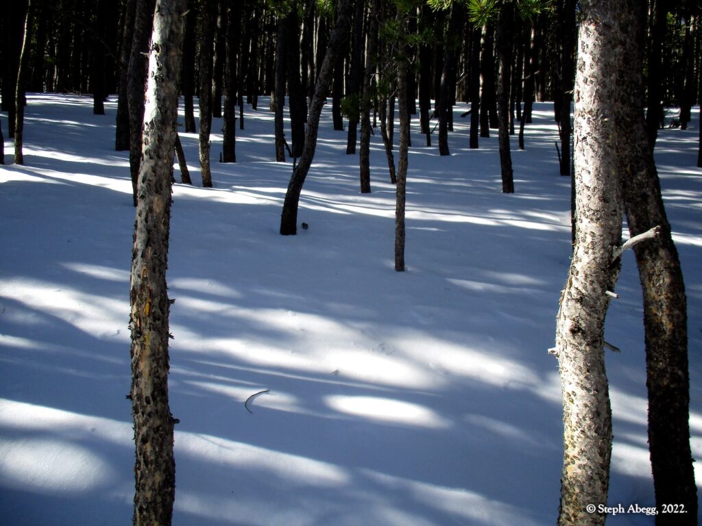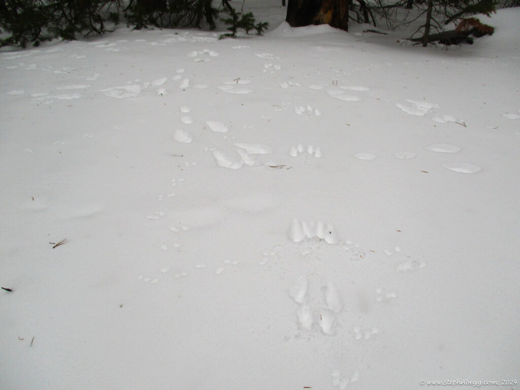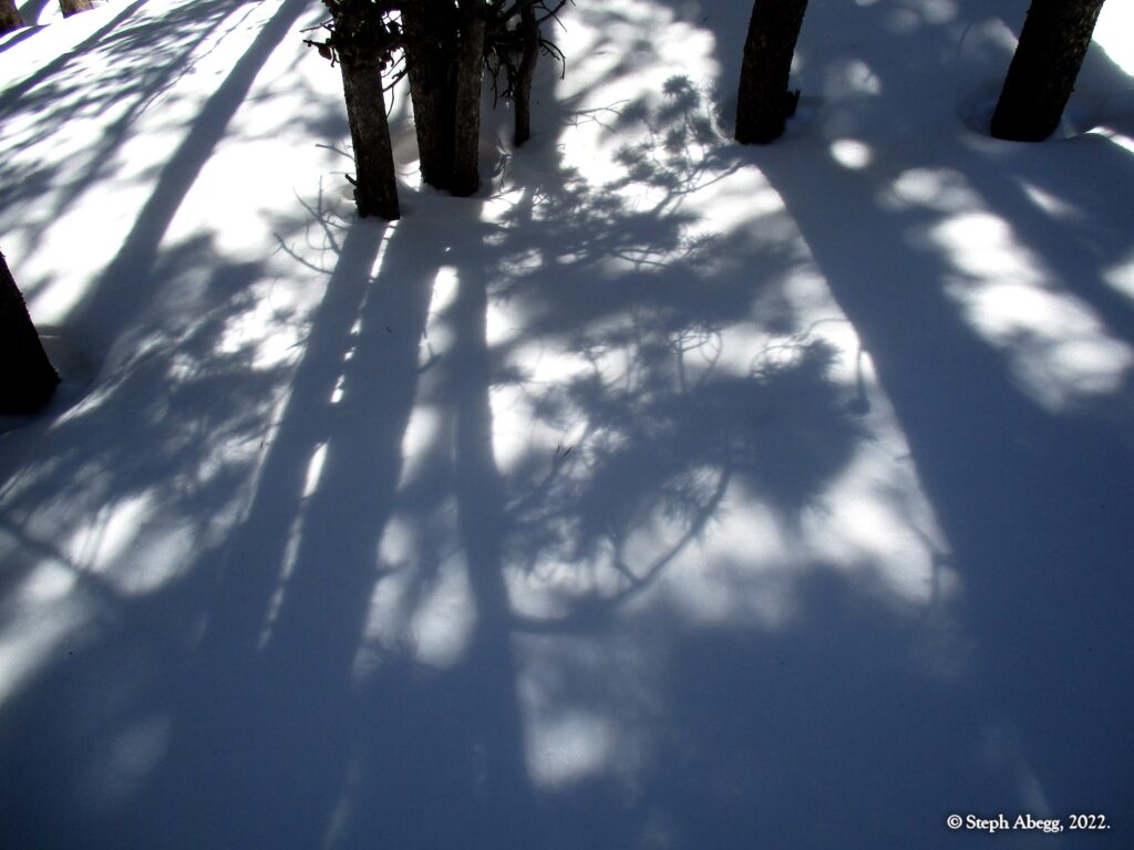 It was indeed a nice workout, since I had to cut steps through the windblown snow the entire way. I wore snowshoes until the rocky summit. The hike stays in the trees until the very top, so it was a good choice for a windy day—the sunny skies and gleaming mountains made me wish a few times that I had chosen a more mountainous objective, but when I got to the summit and experienced the "dog's head out the window of a car moving at 60mph" feeling I knew I had made a good choice for the day's hike. I did not see anyone else the entire hike.