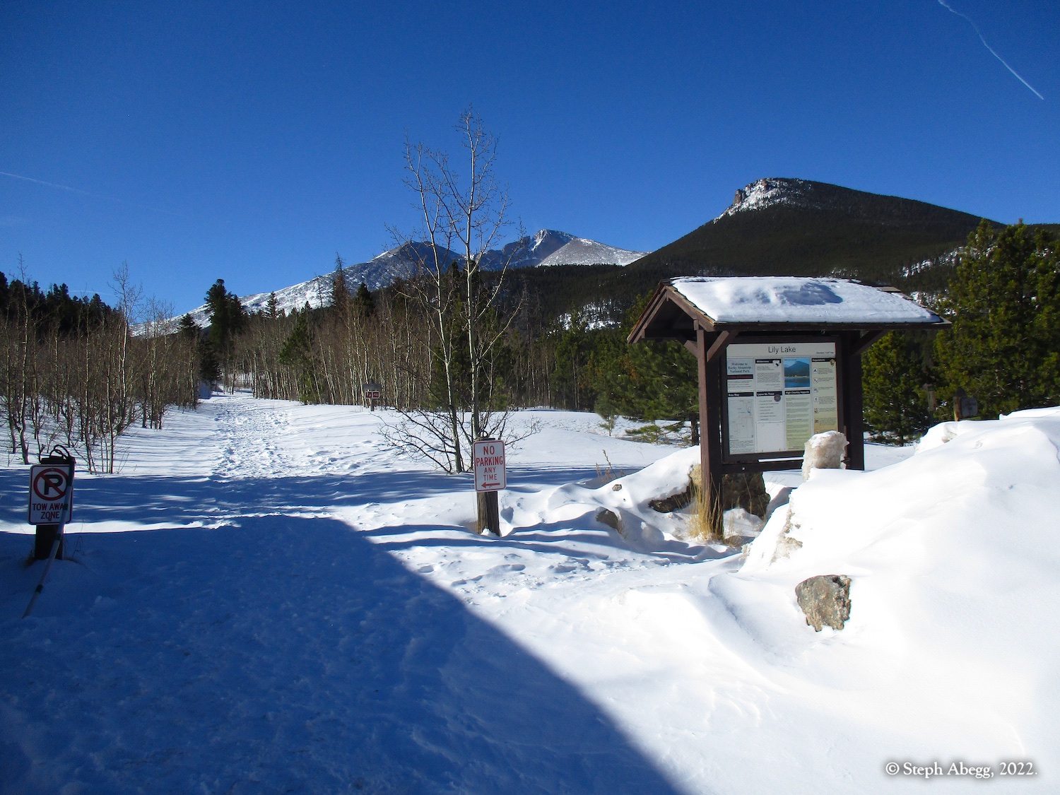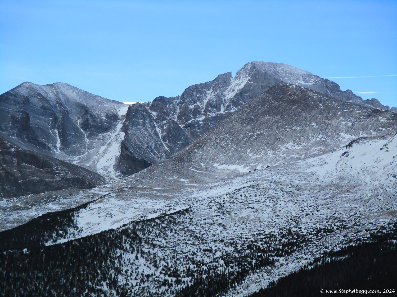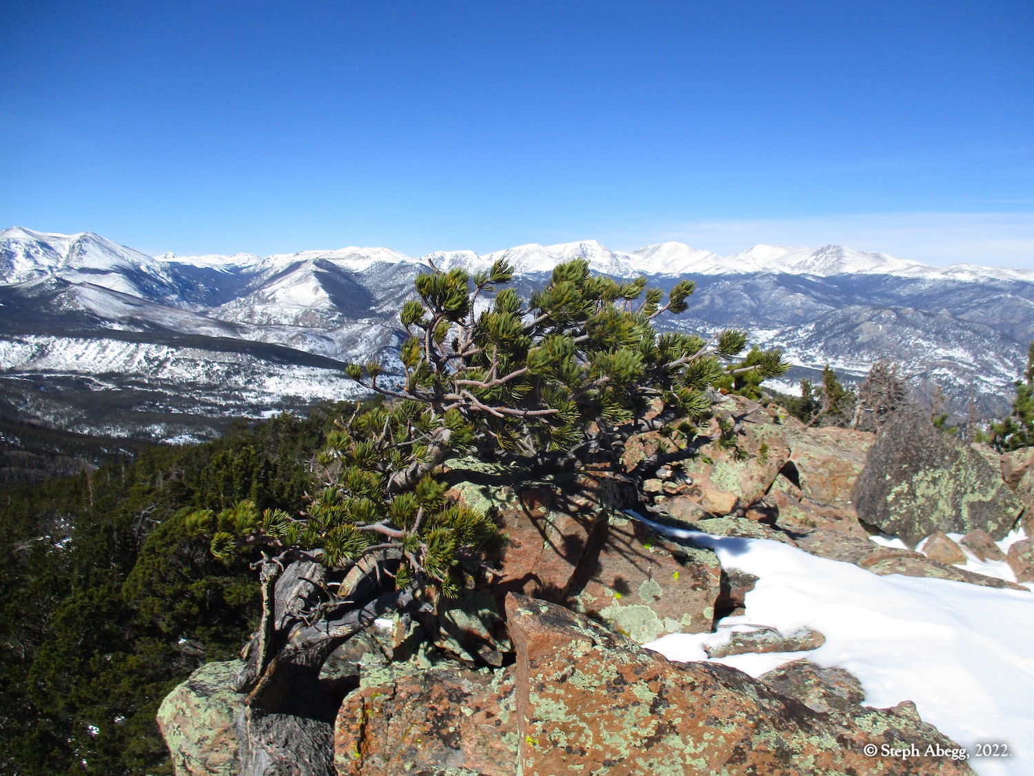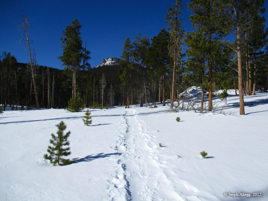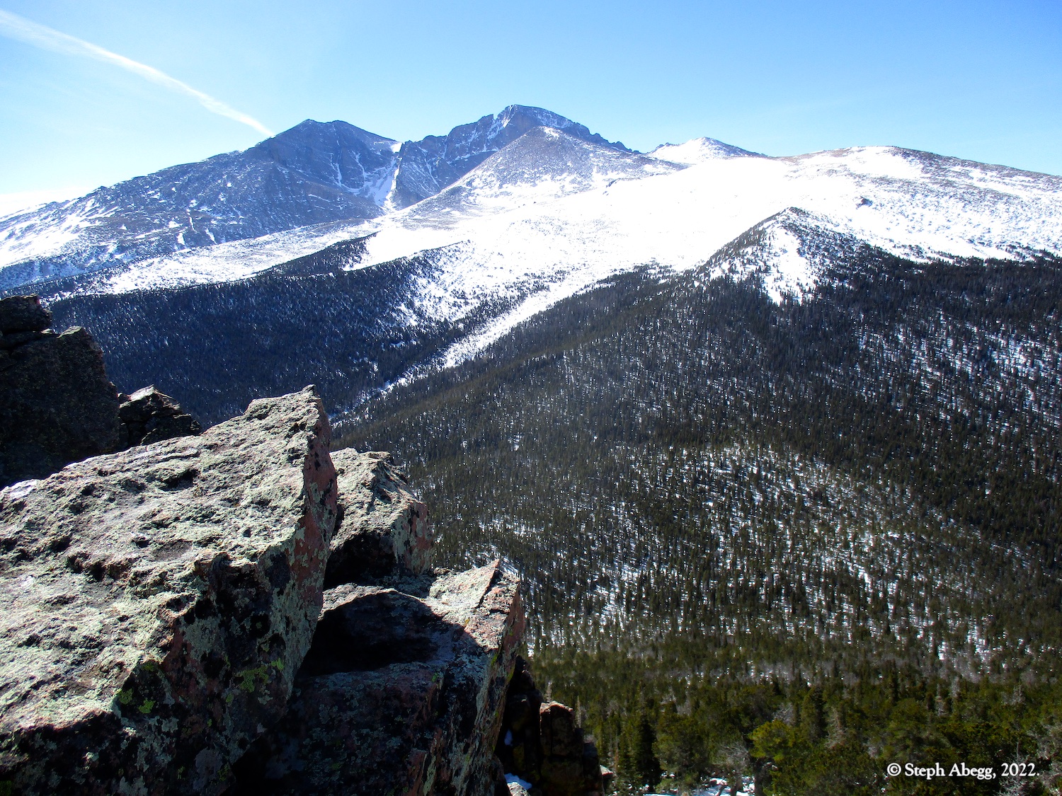 Estes Cone is an impressive hill next to Longs Peak whose very top reaches just above treeline, allowing for great views of Longs Peak across the way and and the Rocky Mountain National Park skyline. There are two ways to the top: 6.8 miles + 2100 ft gain from Lily Lake Trailhead or 6.6 miles + 1600 ft gain from the Longs Peak Trailhead. Either way, there is a rough scramble up the last 0.6 miles. Going via Lily Lake provides a slightly better workout, so that's the way I went on this day.