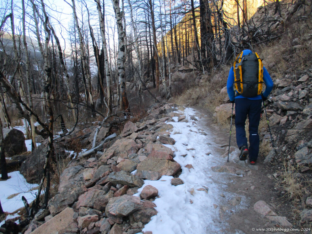 The hike took us just a few hours. There was not much snowpack, so our snowshoes and spikes were just training weight. Below is a sampling of photos from our snowy morning hike.