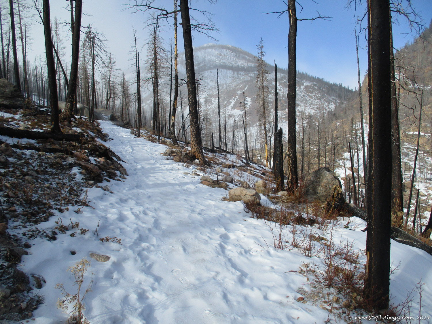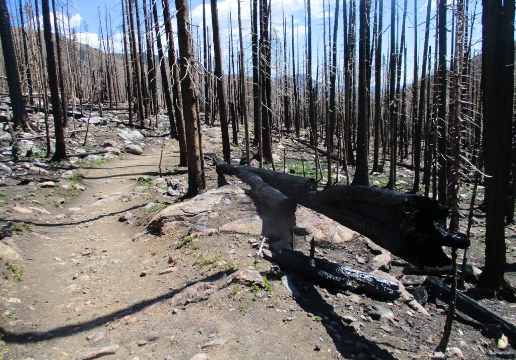 Fern Lake is one of the most popular hikes in RMNP, maily due to the well-maintained and easy trail. The trail runs 4.8 miles from Moraine Park in the eastern part of RMNP westward to Fern Lake, the first portion of the trail following the course of the Big Thomposn River. The entirty of the trail to Fern Lake travels through terrain burned by the East Troublesome Fire in the fall of 2020.