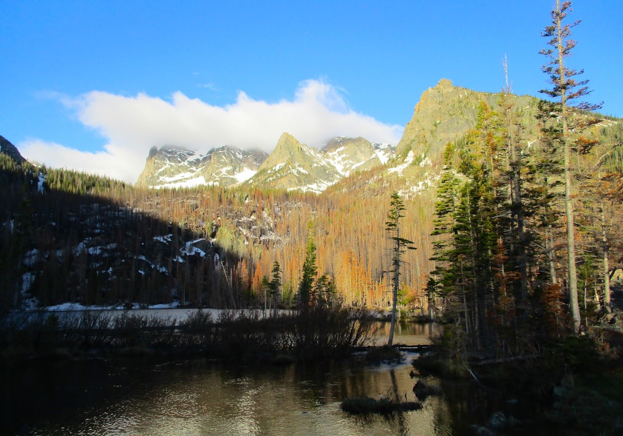 Fern Lake itself is below treeline, but provides great views of 12,129-foot Notchtop Mountain, 11,586-foot Little Matterhorn, 12,331-foot Knobtop Mountain and 11,018-foot The Gable. Just before reaching the shore is the site of the former Fern Lake Backcountry Patrol Cabin. This historic cabin was built in 1925, and functioned as a ranger station until 1949, but was lost in 2020 during the East Troublesome Fire.