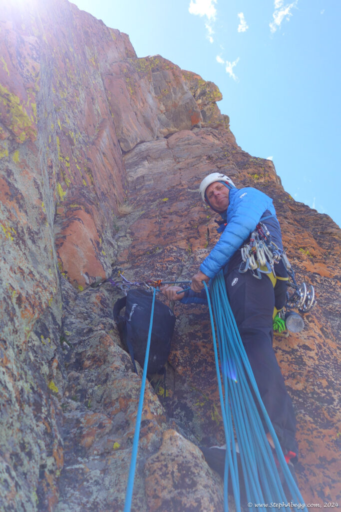 Nate and I first attempted to climb the Foil on a bluebird late-spring day in June 2022. But when we arrived at the top of Pitch 3, a peregrine falcon was circling above, a bit anxious by our presence. We were on a good ledge, knew we could rappel onto the Saber rappel route leaving only a single sling, and felt that continuing upward committed us to the summit or leaving significantly more gear. We conservatively descided to bail, hoping to return at a later date.