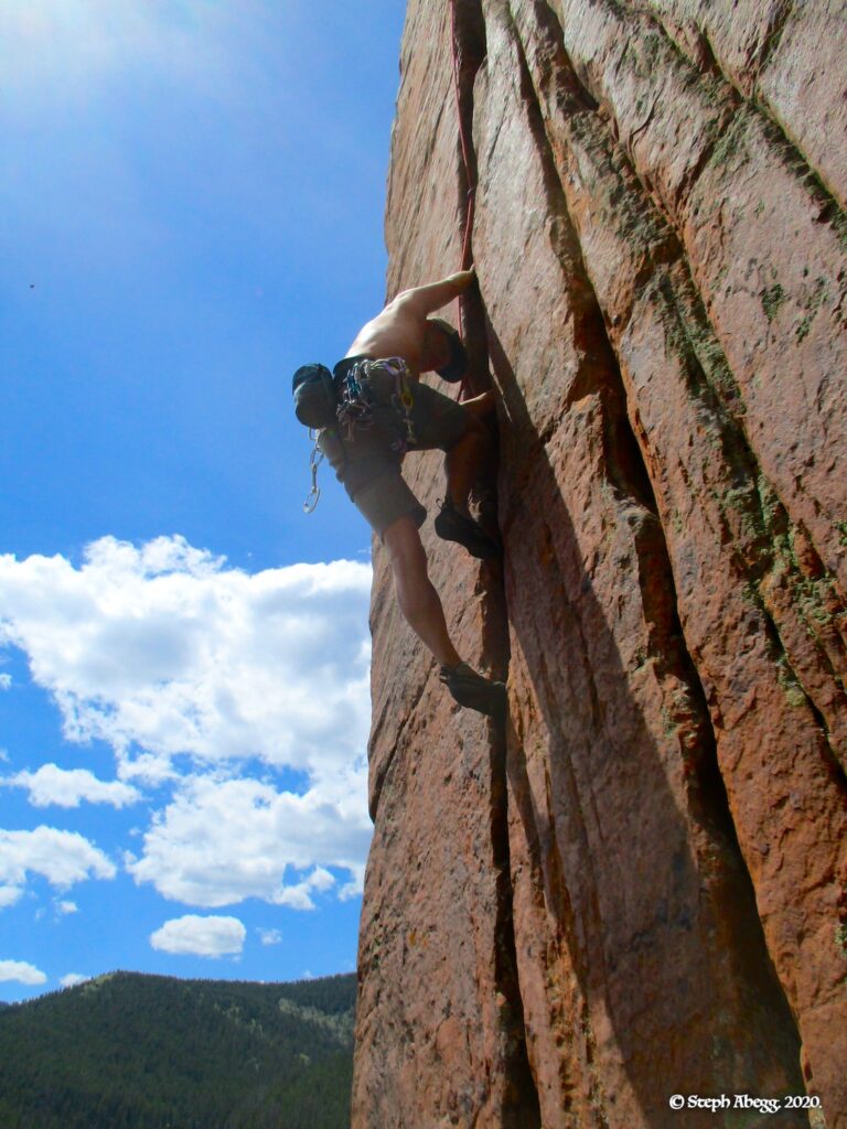 Black Canyon of the Gunnison, my climbing partner Nate and I thought it would be a nice idea to break up the 6-7 hour drive back home by stopping to crag somewhere along the way. We stopped at an outdoors store in Carbondale and bought a guidebook. After perusing the book, we decided to check out the sandstone cliffs of the Frying Pan. We spent half a day cragging there. We were both impressed with the quality of the climbing and enjoyed the sublime setting of the area. We climbed 7 routes. I've included some random photos below.