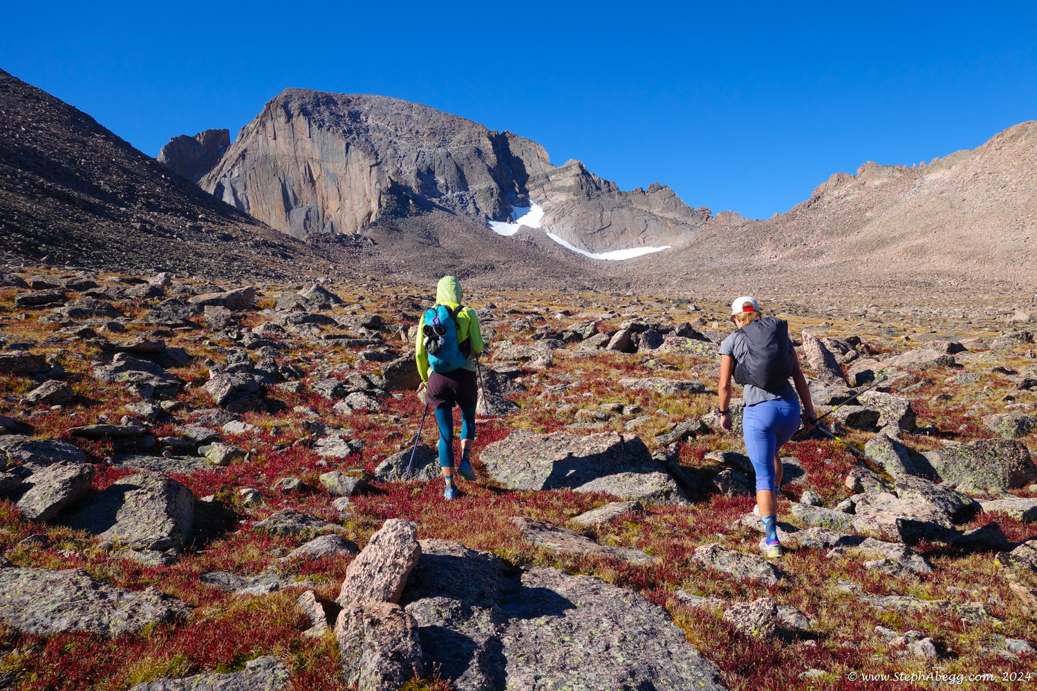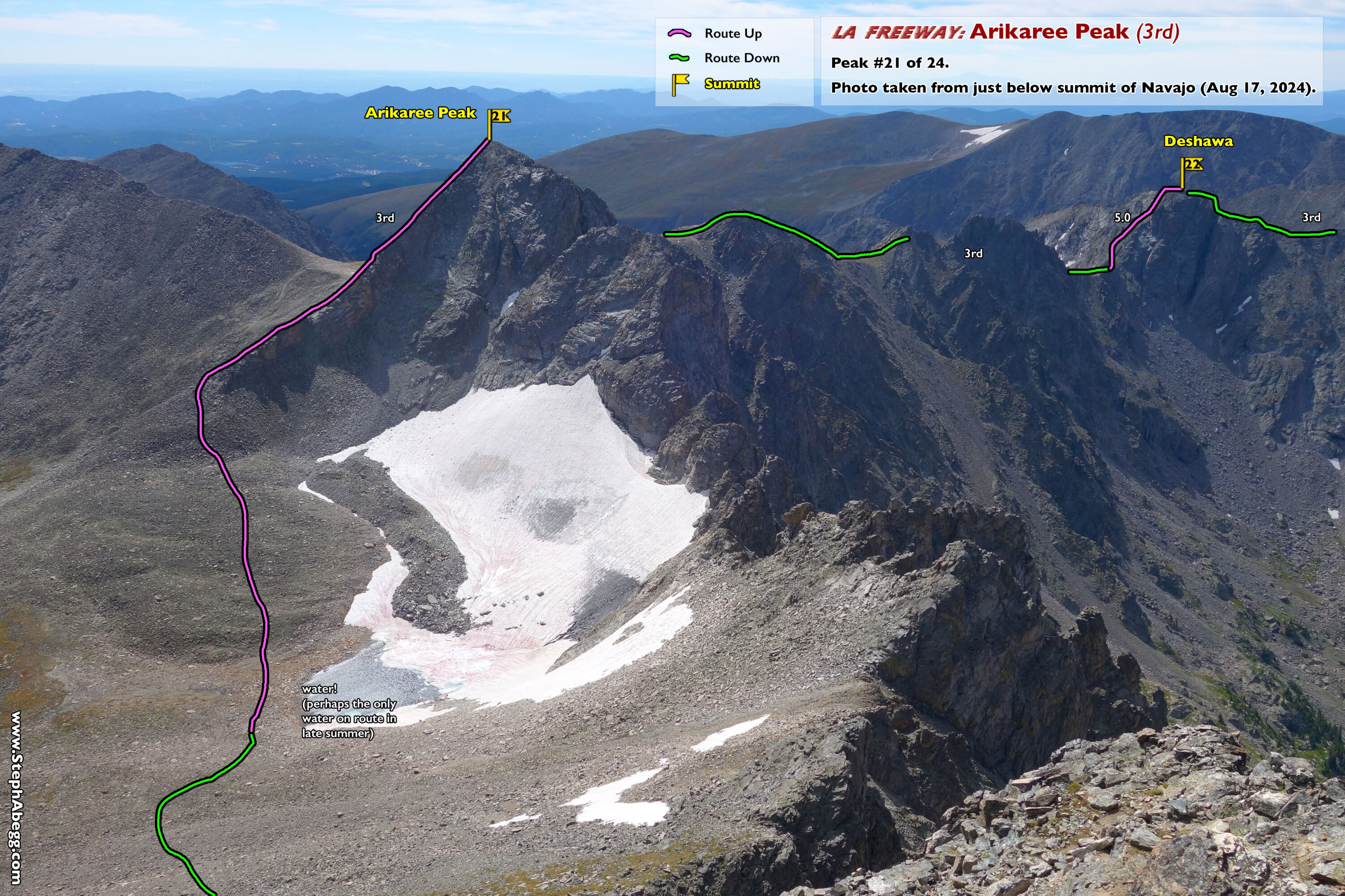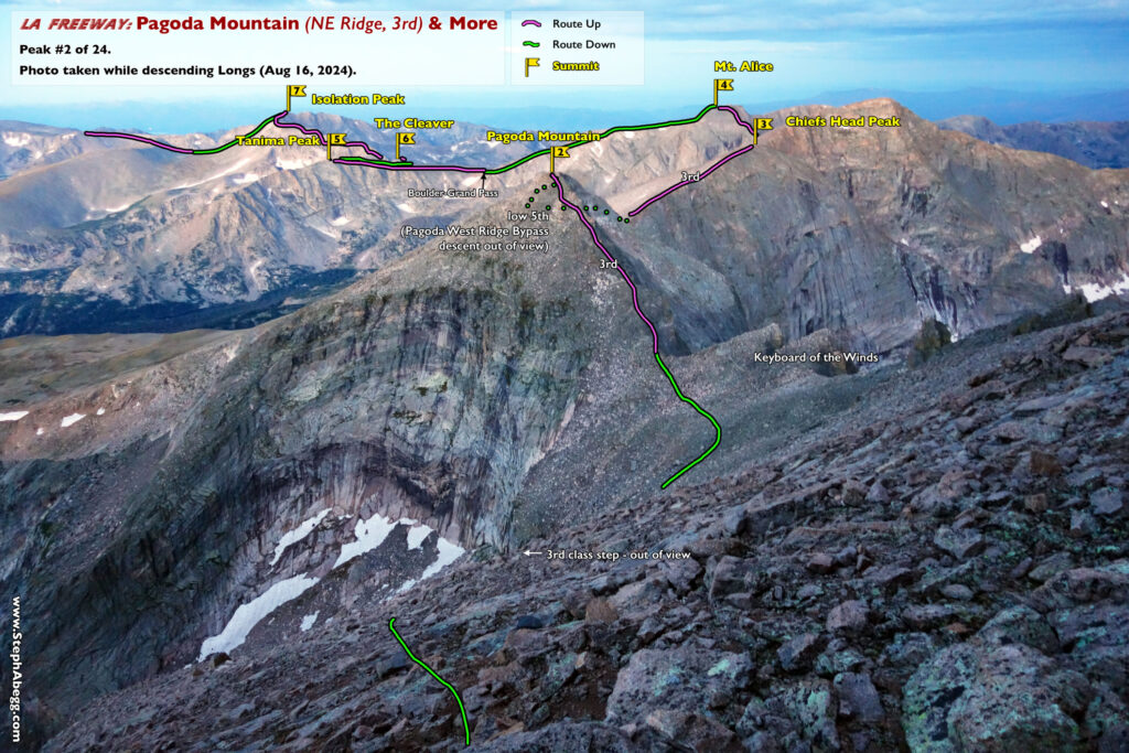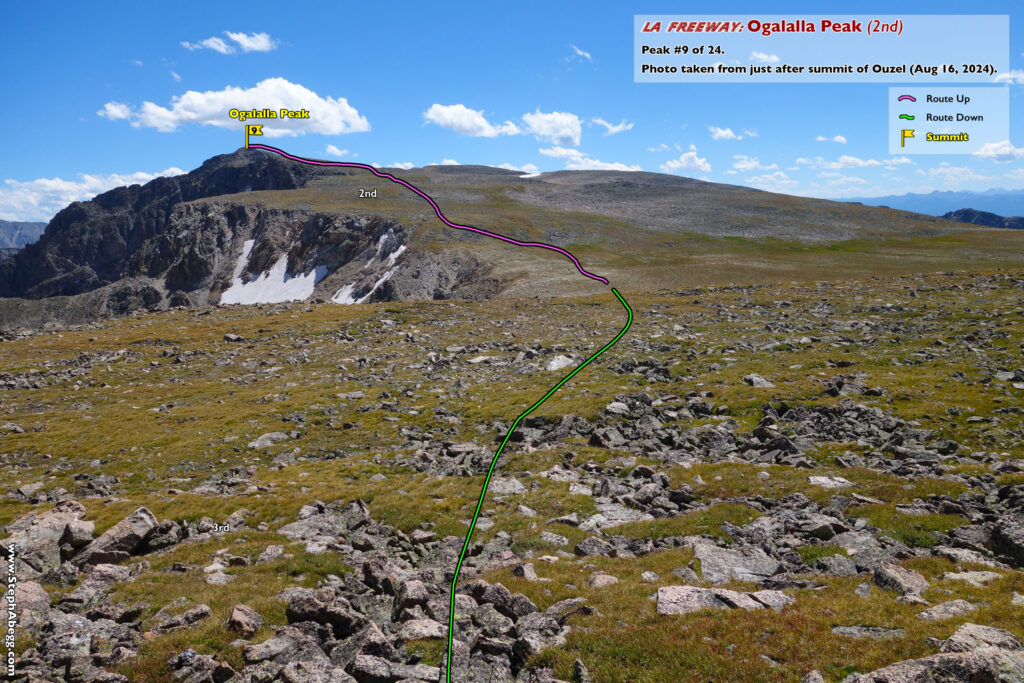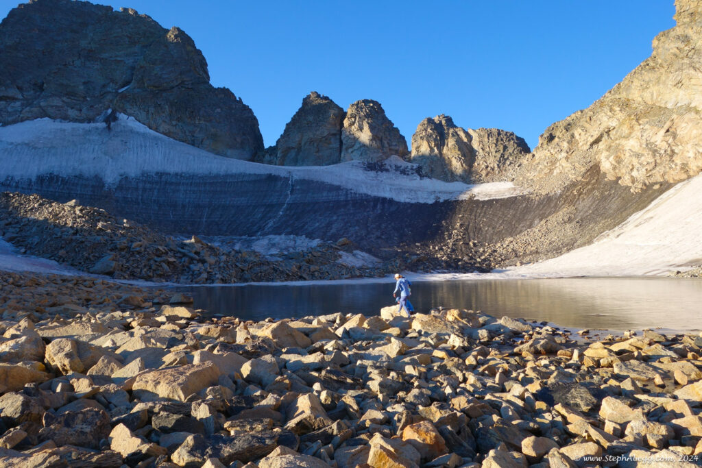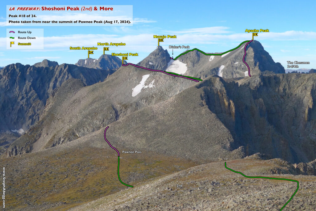 In August 2024, I did the "LA Freeway", a 38-mile ridge traverse from Longs Peak in RMNP to the Arapaho Peaks in the Indian Peaks (LA=Longs-Arapaho). Wanting to maximize my chances of success, I chose to bring bivy gear and spend one night out halfway along the traverse. Due to late summer conditions and plan to bivy, I stashed a couple of gallons of water on the route in advance. The entire adventure took me 39 hours and 45 minutes, breaking the previous self-supported female FKT by several hours. Doing something like this solo and executing with success was a special experience.