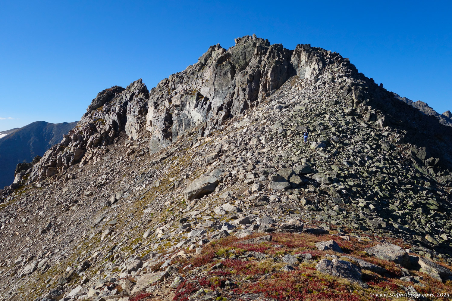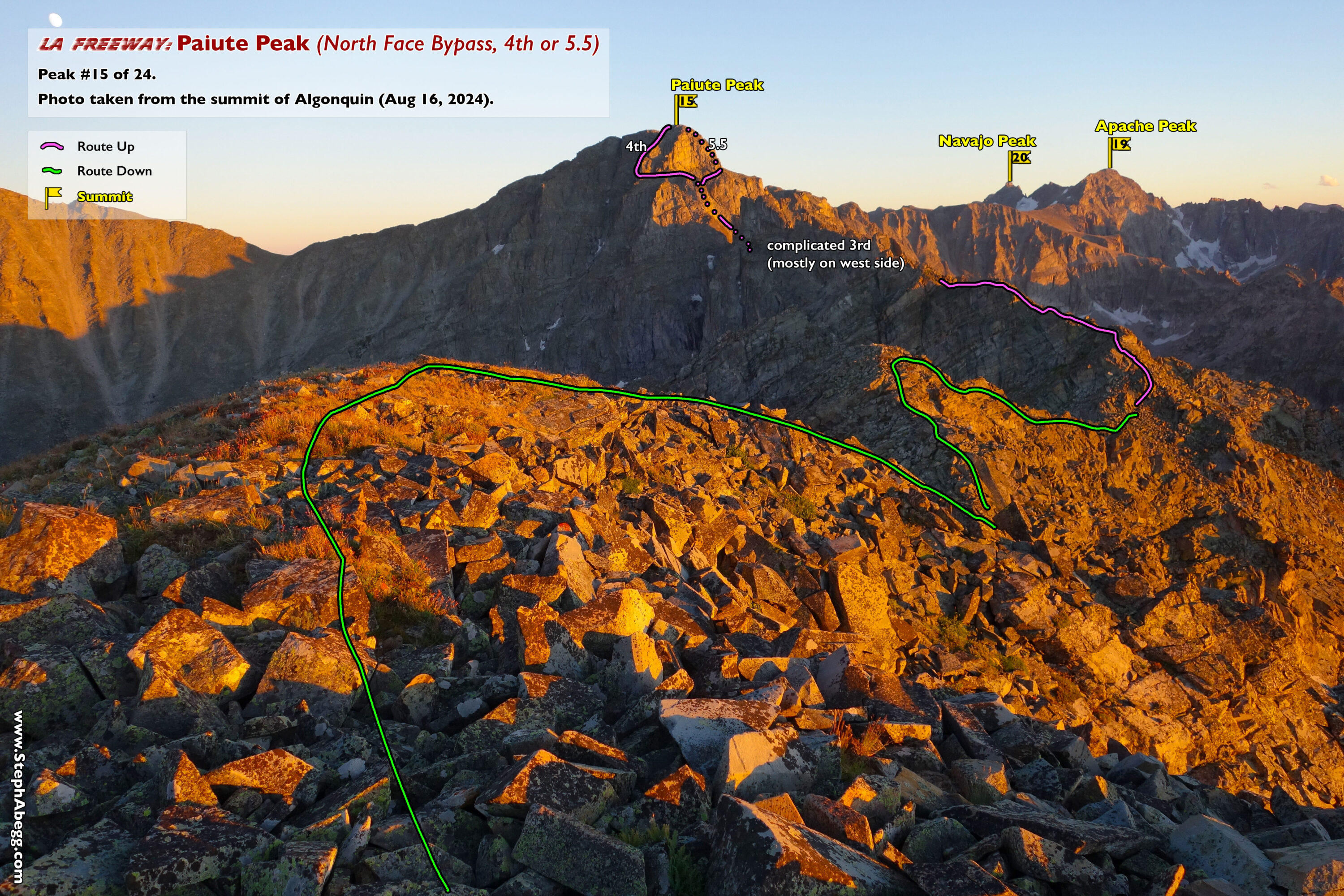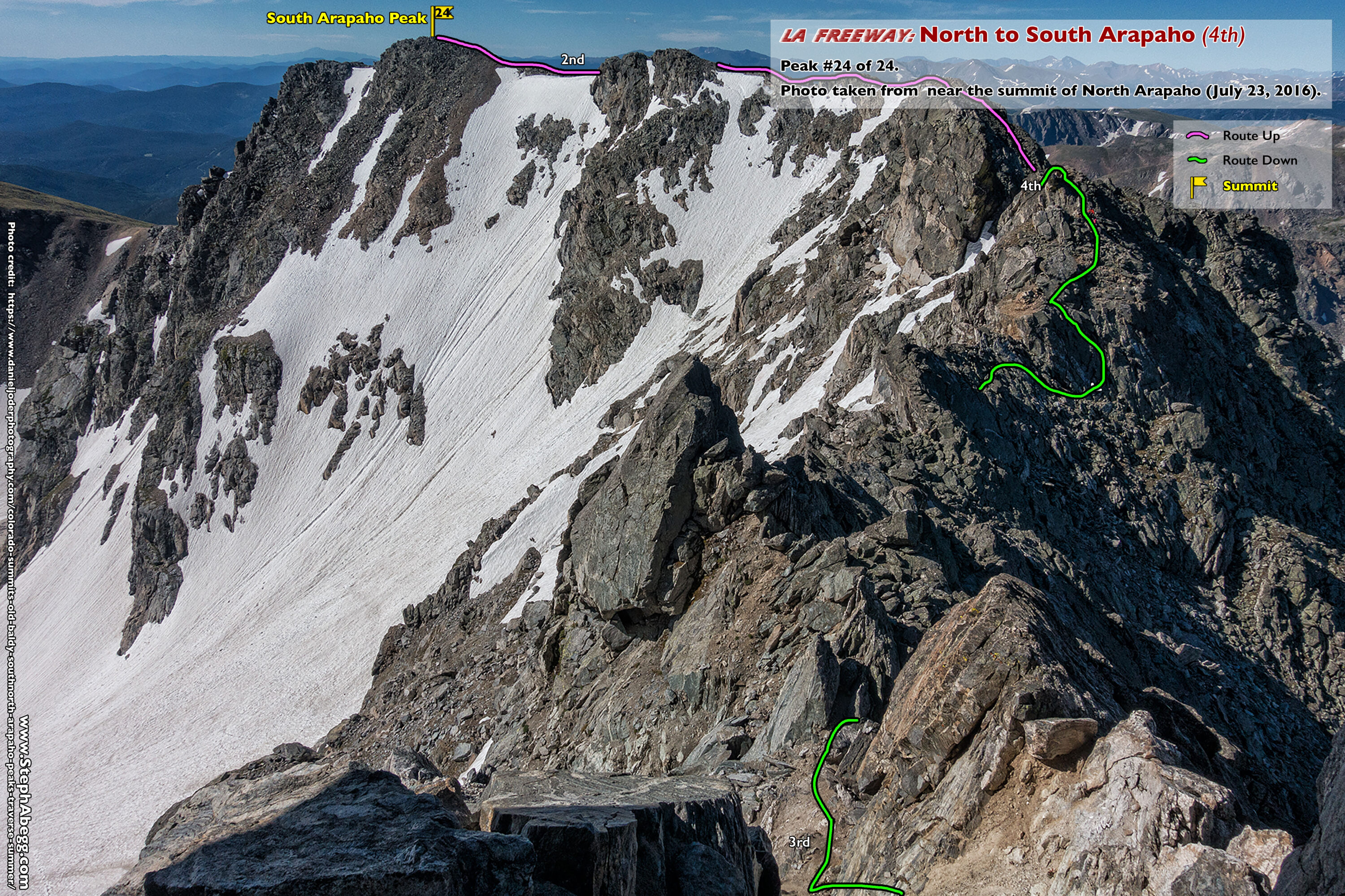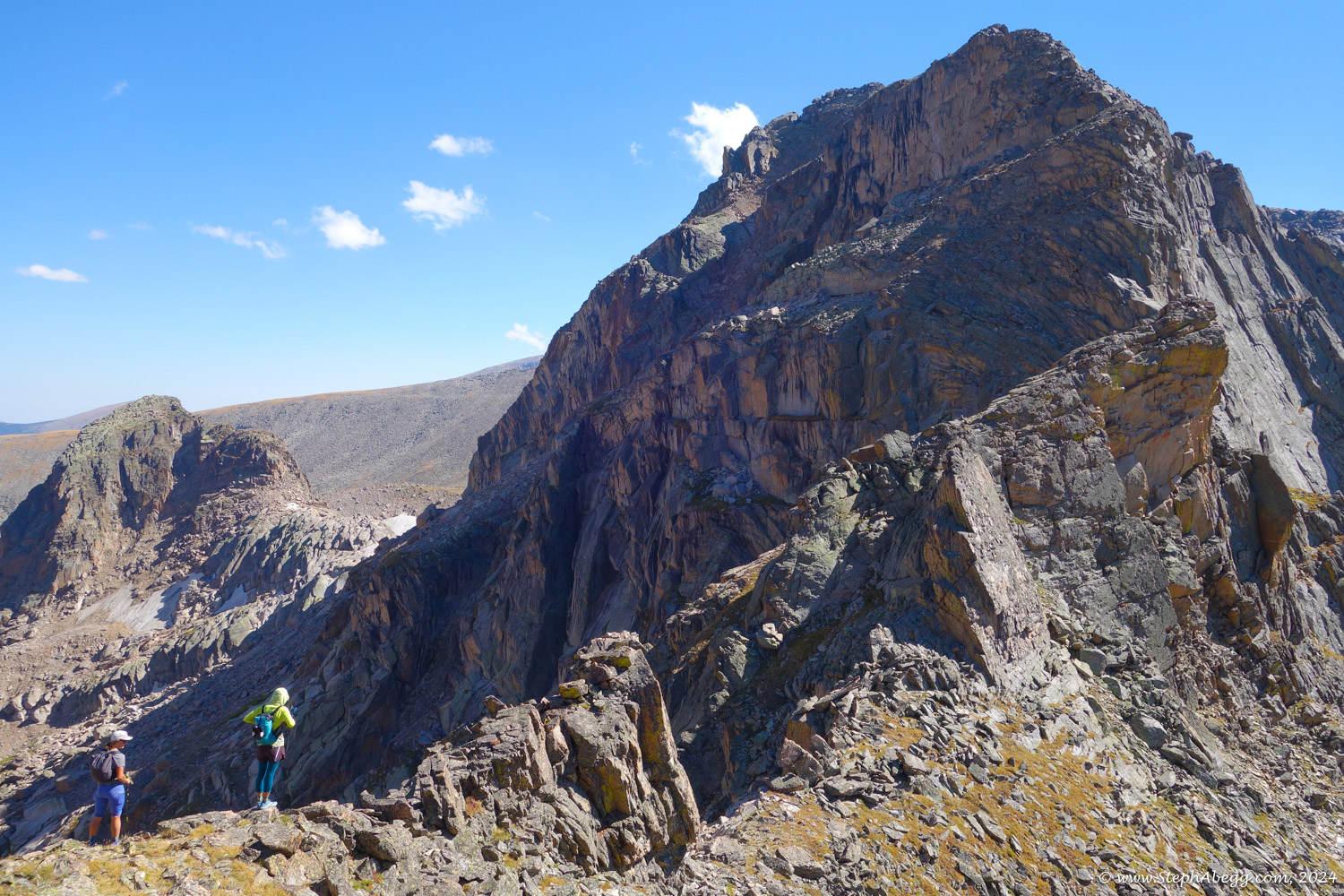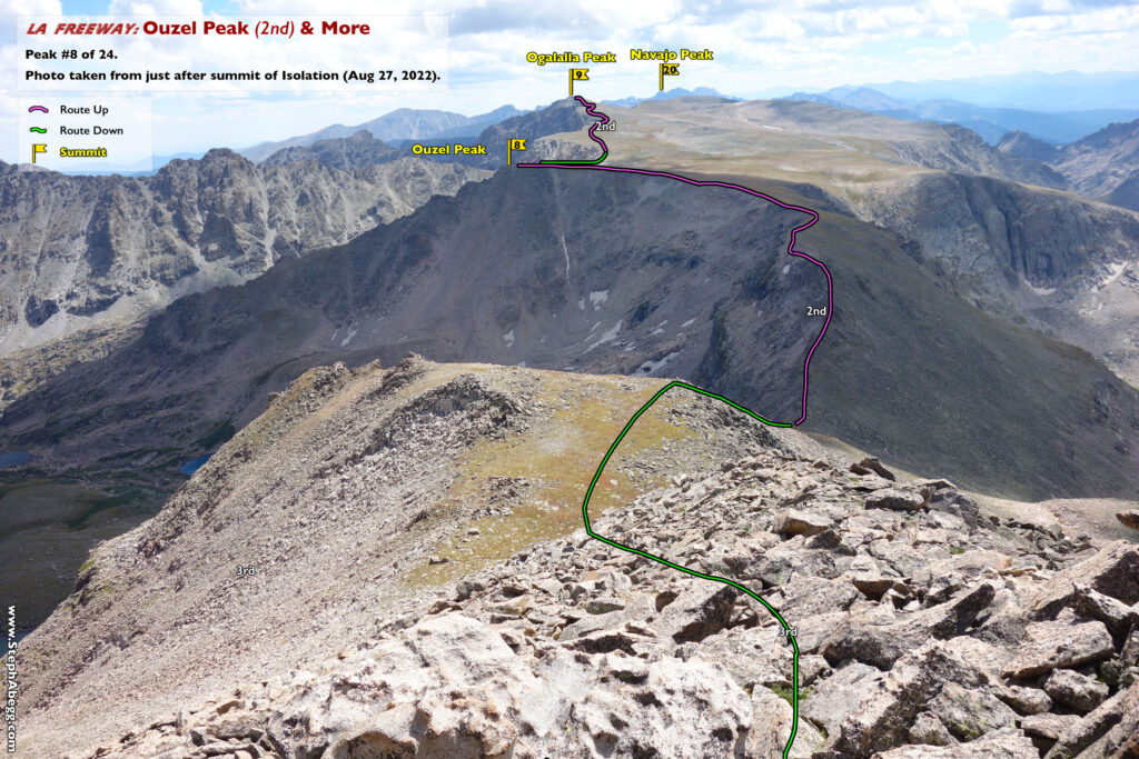In August 2024, I did the "LA Freeway", a 38-mile ridge traverse from Longs Peak in RMNP to the Arapaho Peaks in the Indian Peaks (LA=Longs-Arapaho). Wanting to maximize my chances of success, I chose to bring bivy gear and spend one night out halfway along the traverse. Due to late summer conditions and plan to bivy, I stashed a couple of gallons of water on the route in advance. The entire adventure took me 39 hours and 45 minutes, breaking the previous self-supported female FKT by several hours. Doing something like this solo and executing with success was a special experience.