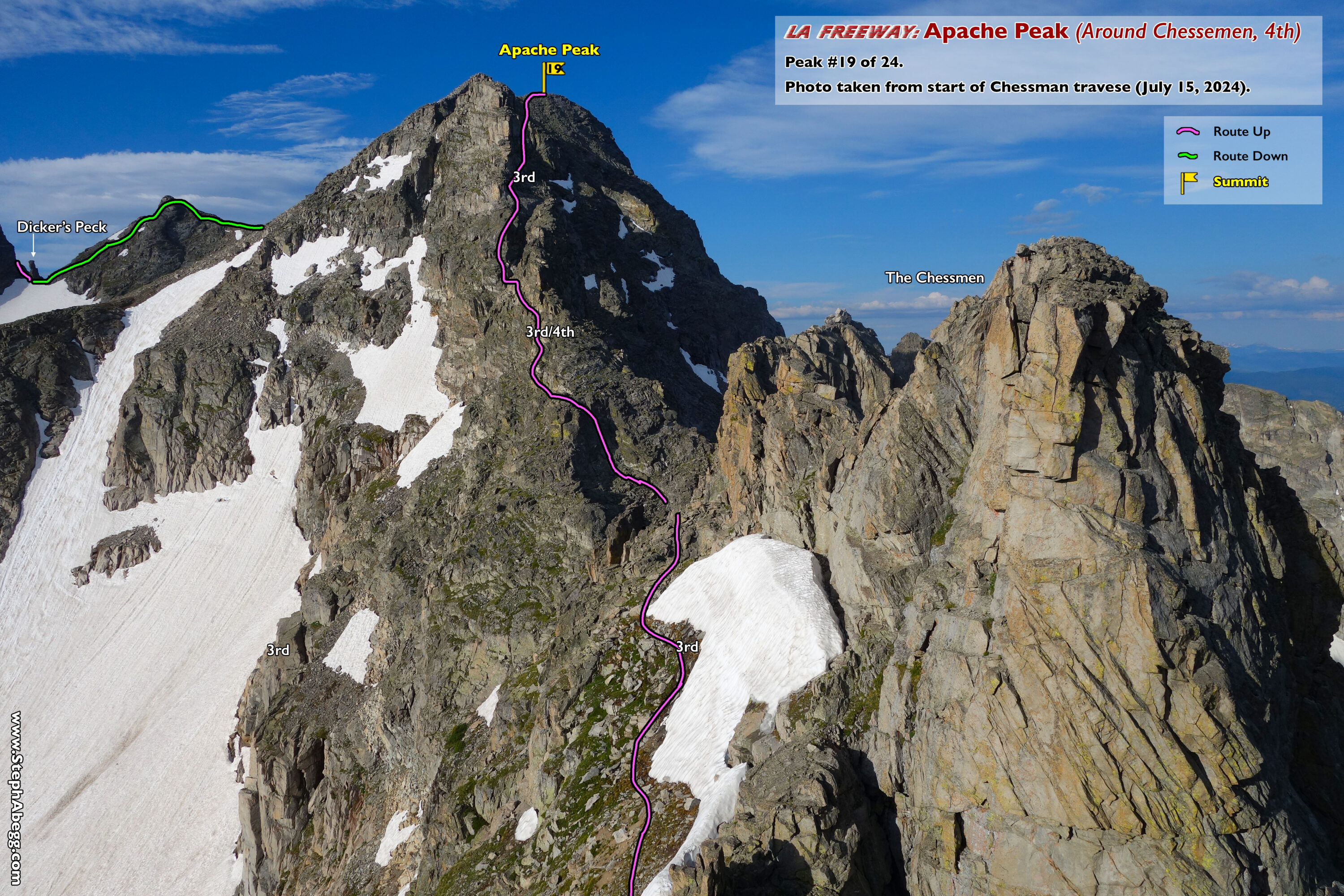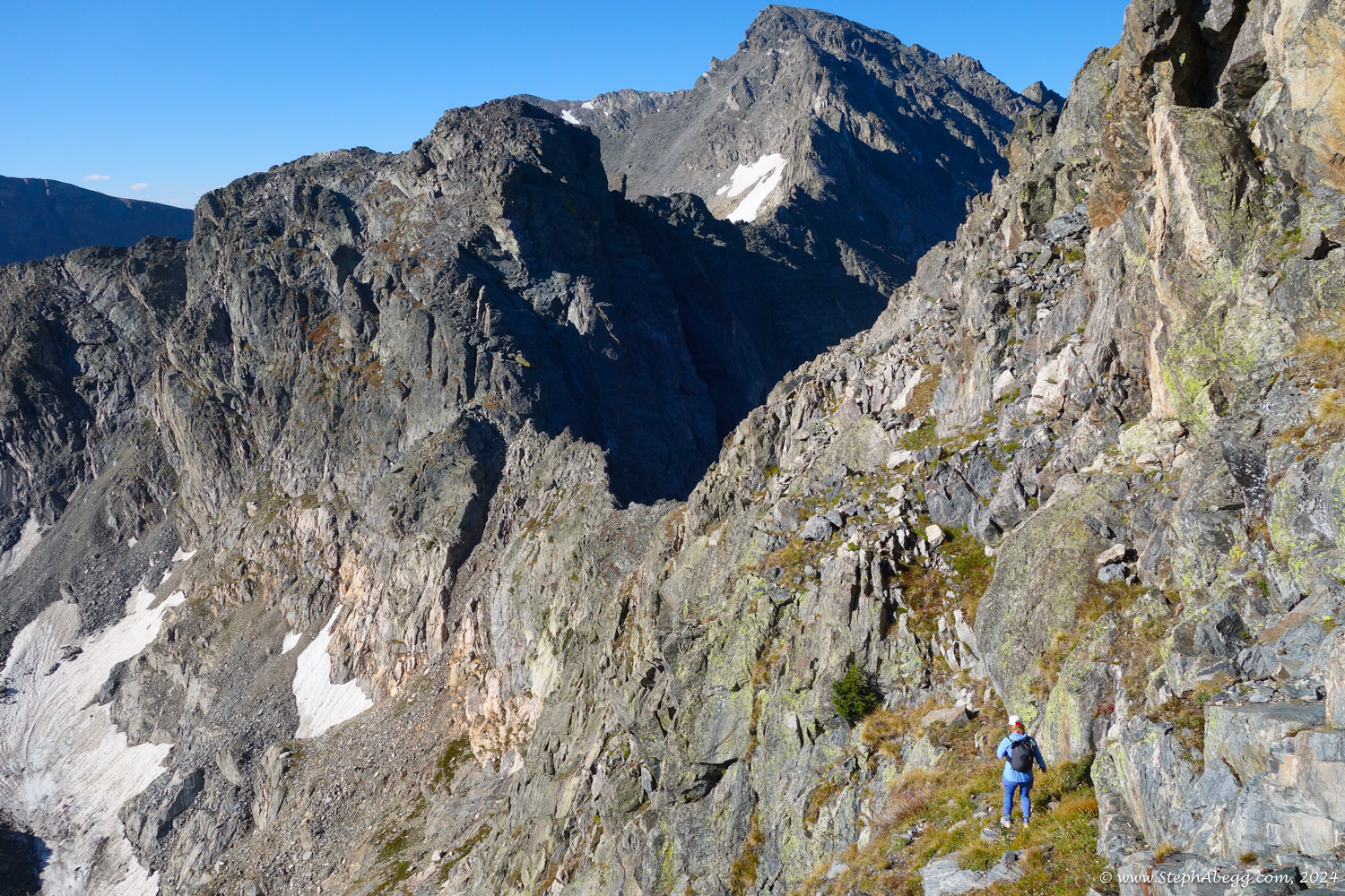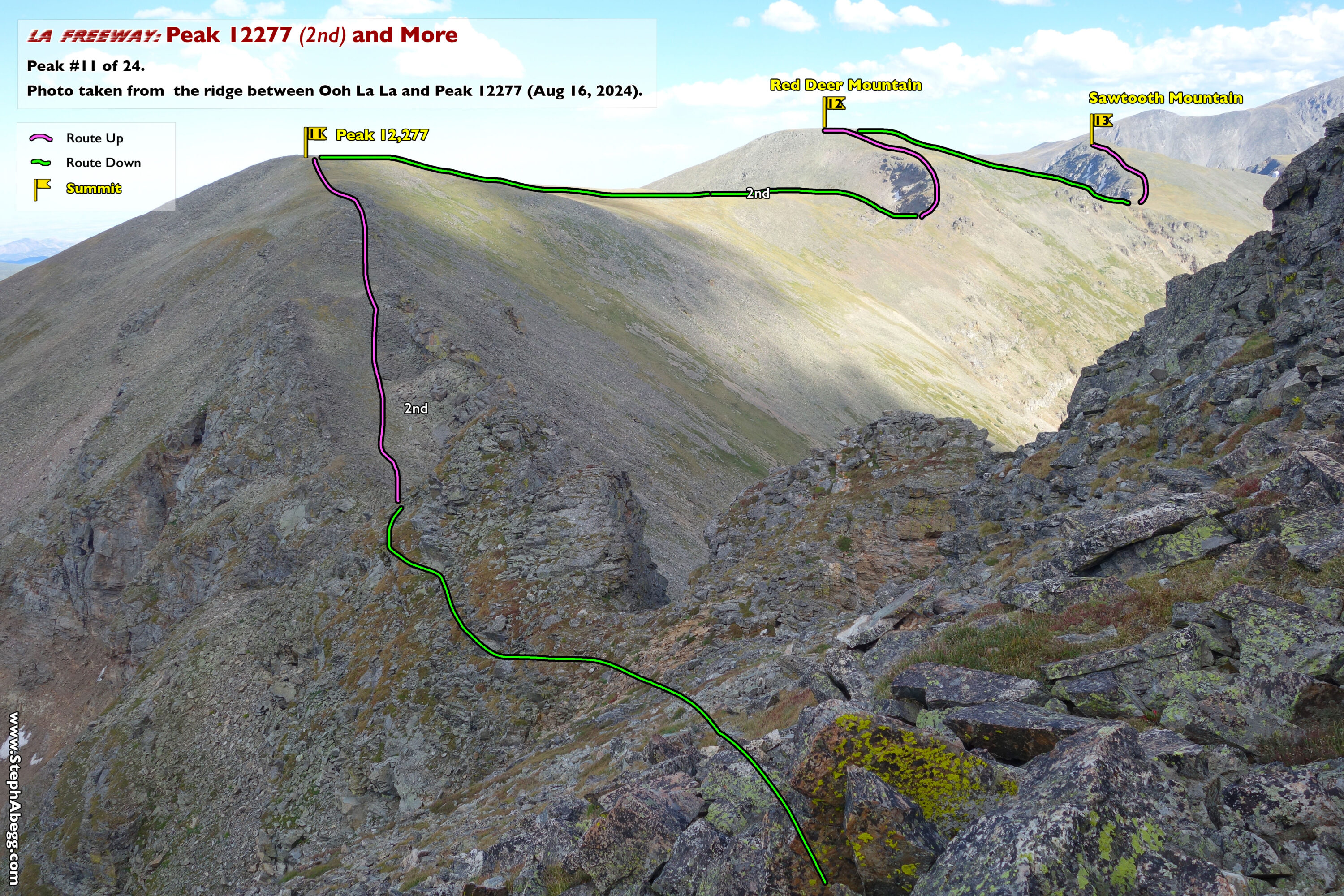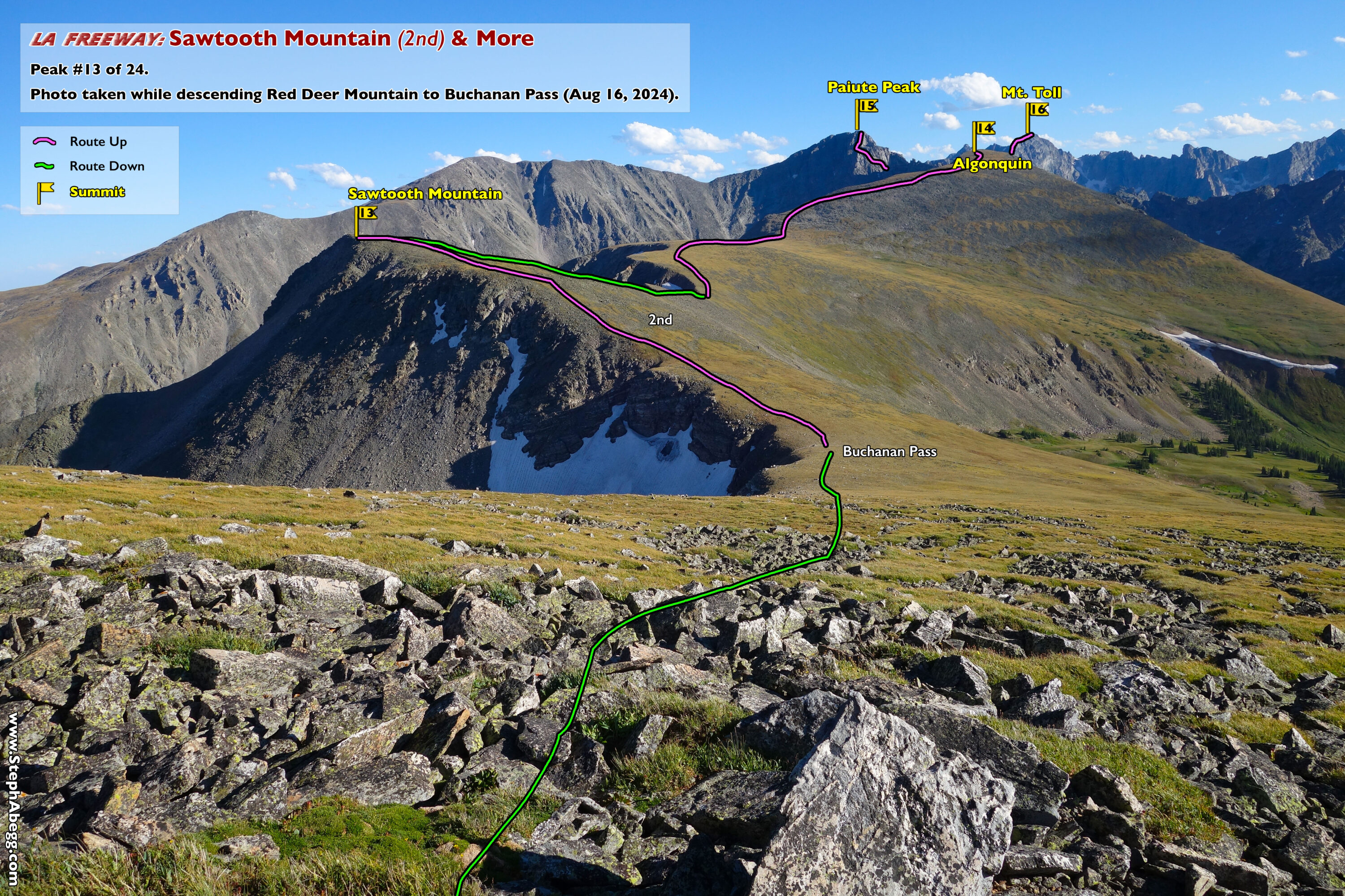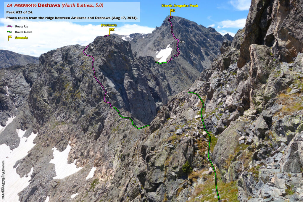 In August 2024, I did the "LA Freeway", a 38-mile ridge traverse from Longs Peak in RMNP to the Arapaho Peaks in the Indian Peaks (LA=Longs-Arapaho). Wanting to maximize my chances of success, I chose to bring bivy gear and spend one night out halfway along the traverse. Due to late summer conditions and plan to bivy, I stashed a couple of gallons of water on the route in advance. The entire adventure took me 39 hours and 45 minutes, breaking the previous self-supported female FKT by several hours. Doing something like this solo and executing with success was a special experience.