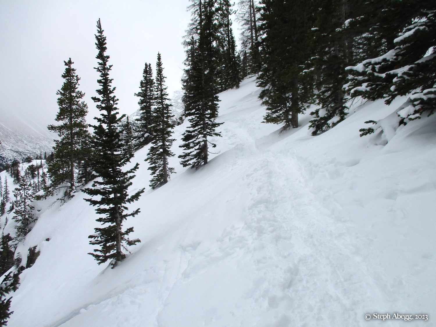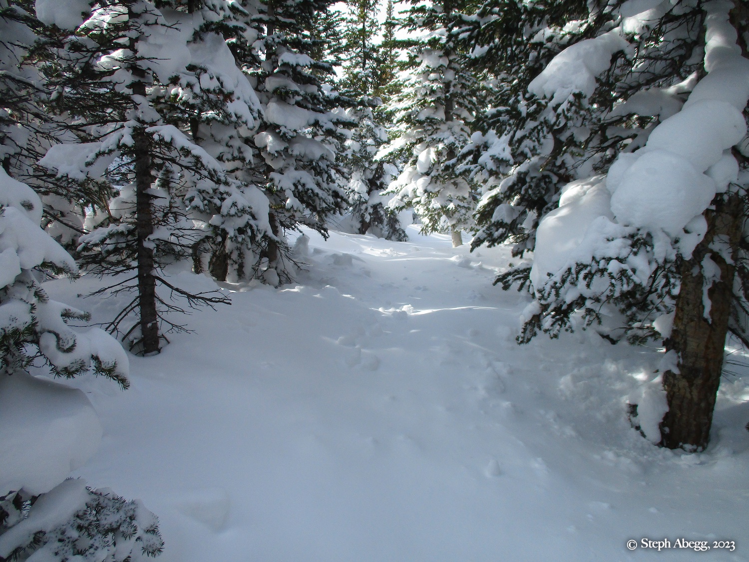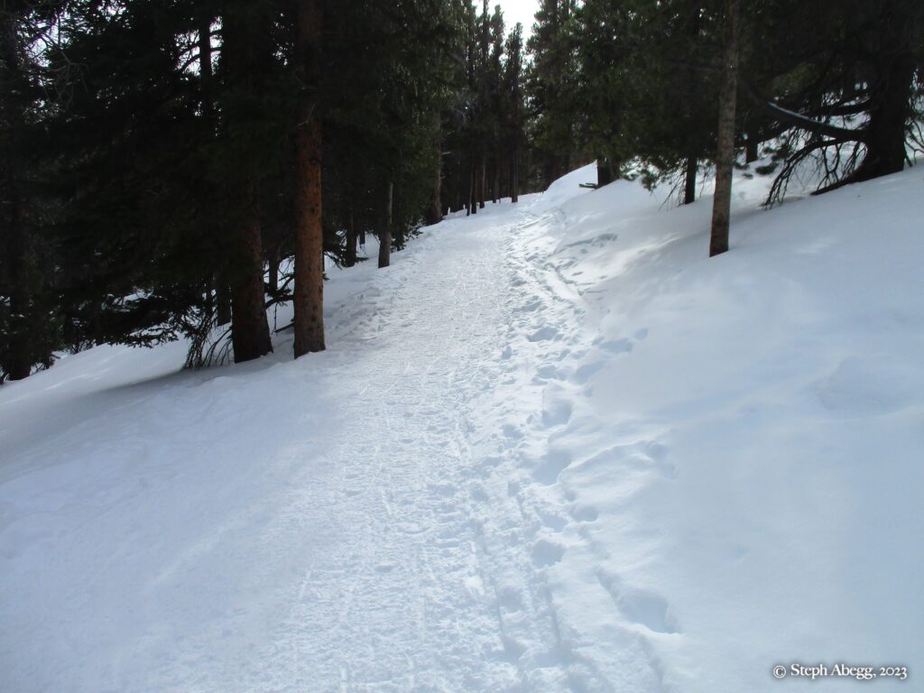 I had heard that in the winter, Lake Haiyaha has some unique ice formations. I was curious to check them out. So during a midweek afternoon lull in my workload, I took advantage of a couple of free afternoon hours to do a quick hike up to Lake Haiyaha.