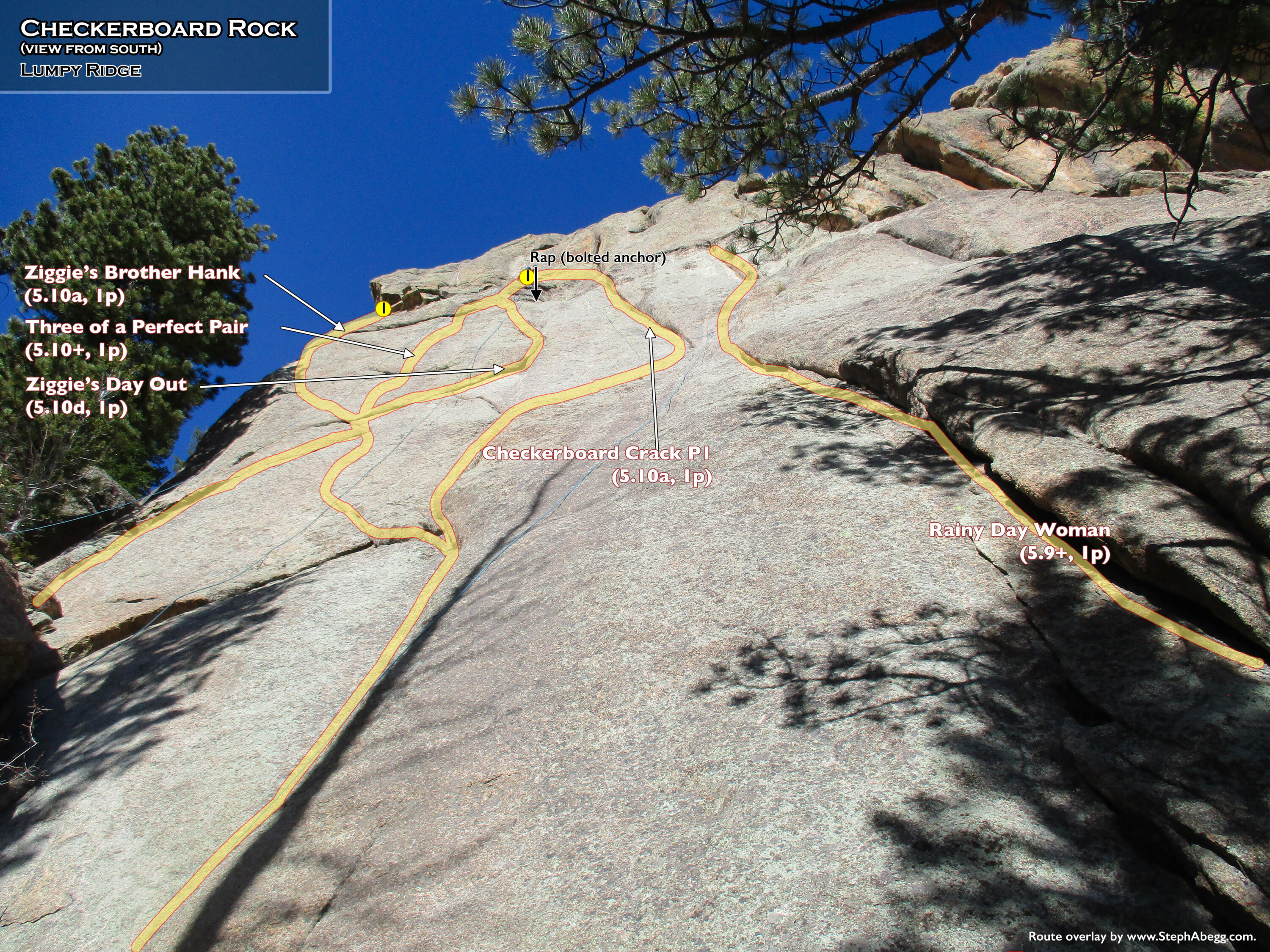 Make an awkward move or two at the start and continue to the top of Checkerboard Rock.