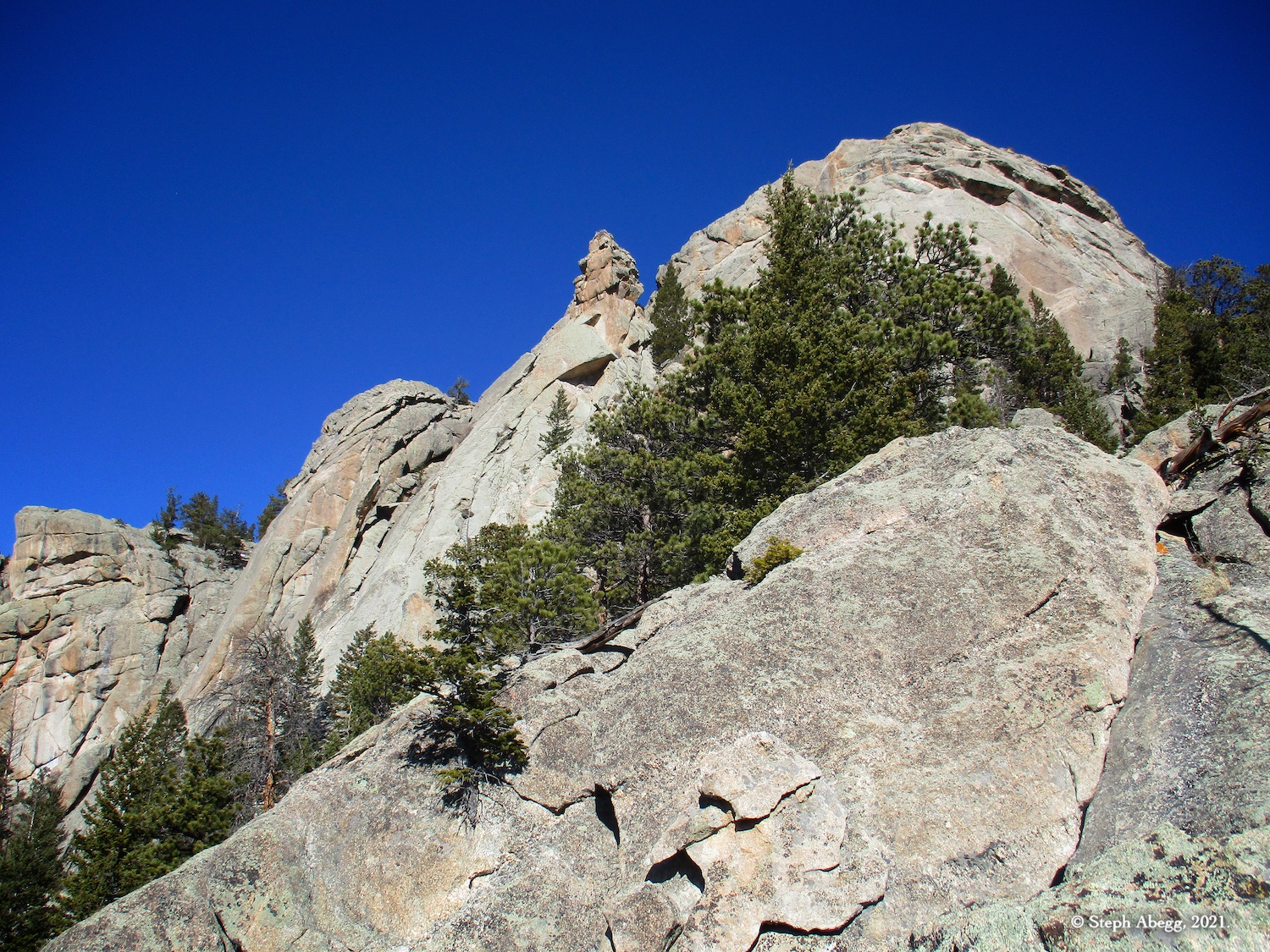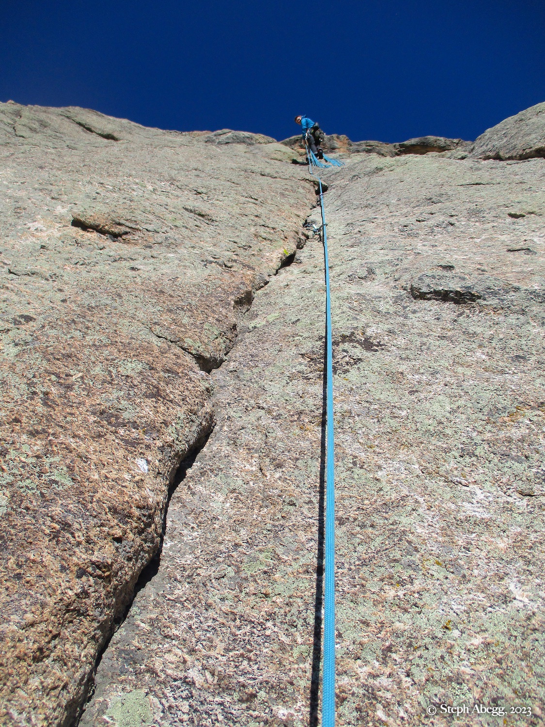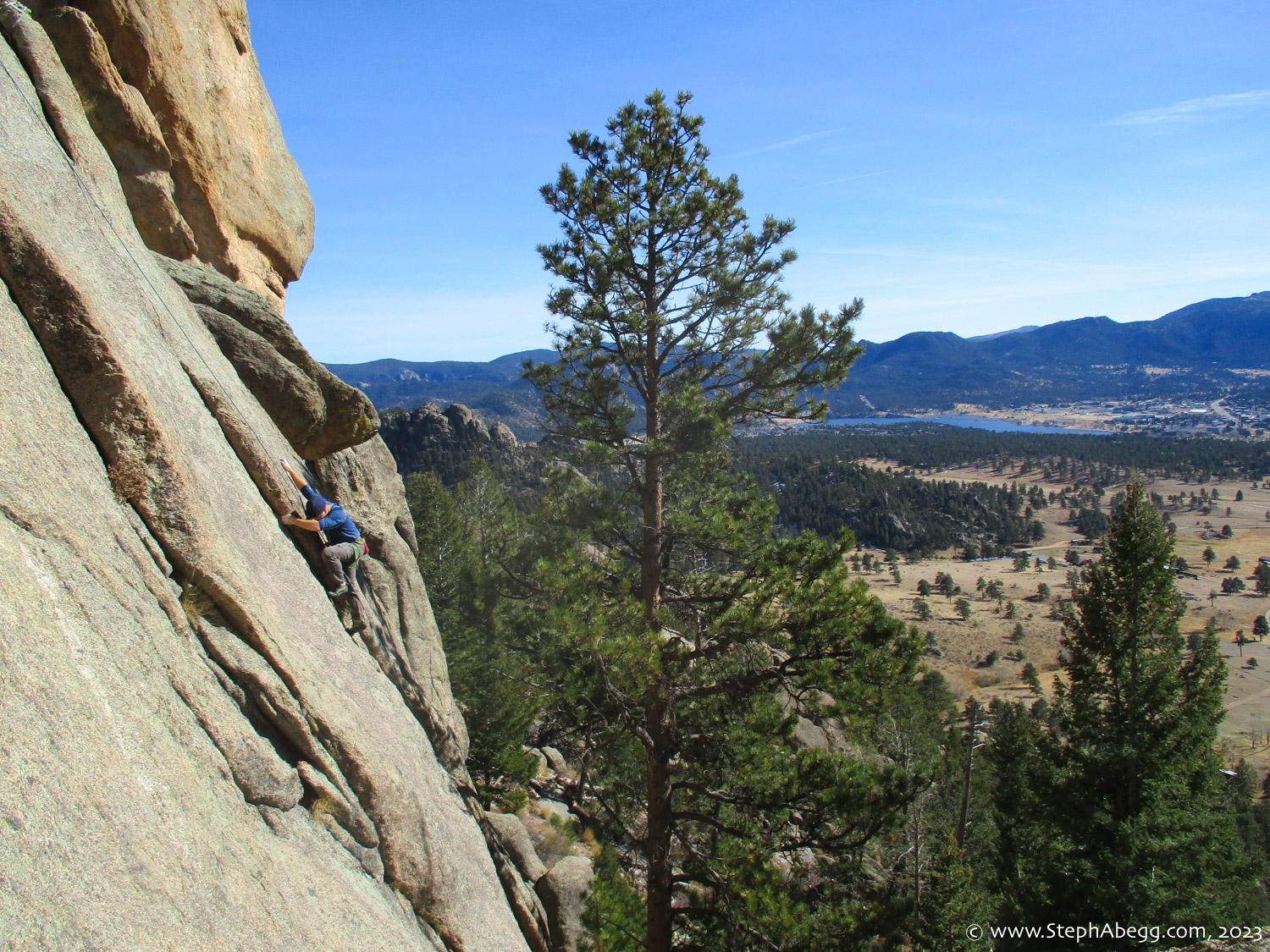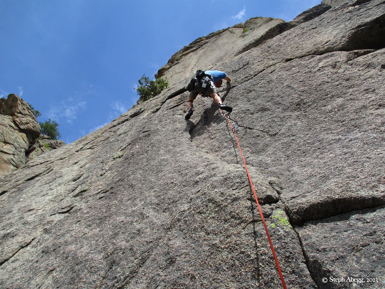 This was a fun 6+ pitch link-up of the three main features in the Batman Rock area. We started off with Crystal Catch on Checkerboard Rock. From the top of Checkerboard Rock, a 5 minute scramble brought us to the base of Batman Pinnacle. We climbed the classic Batman and Robin route to the top of the pinnacle, then did a short rap off an anchor on top to the base of Batman Rock across the way, and climbed Hand Jive to the top of Batman Rock. It was one of those unusually warm and calm winter days where Lumpy is just the best place to be.