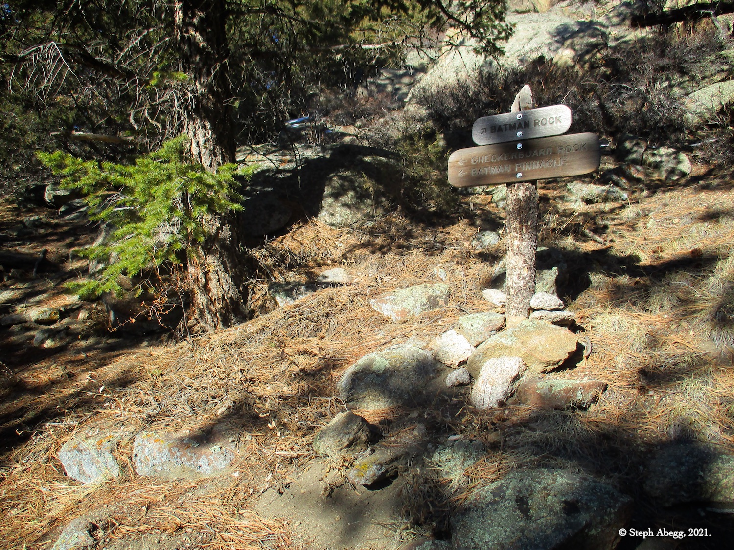 ~30 minutes on trail from parking lot to base of Checkerboard Rock. The turnoff is signed.