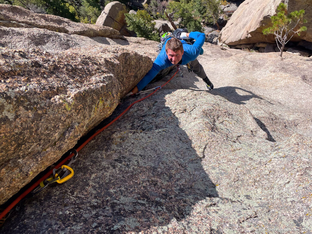 Hot Licks was a stellar route with a short and spicy face traverse and some fun wide climbing.