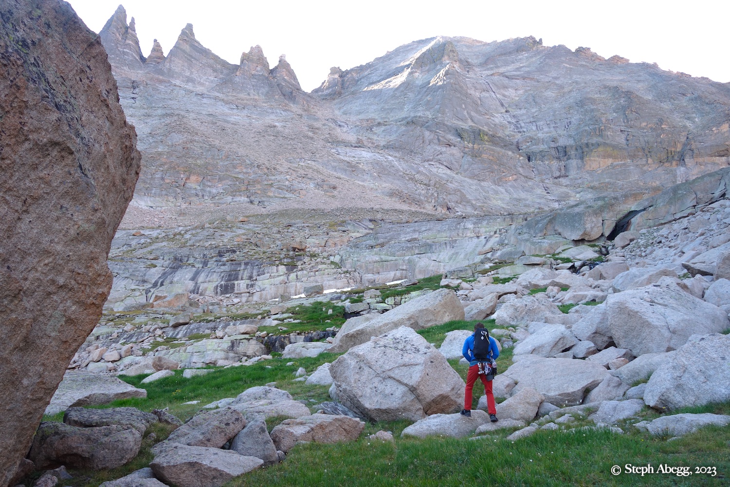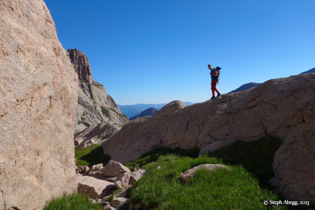 The summer of 2023 seemed to be on a repeating pattern of 2 rainy days followed by 5 sunny days. So, in mid-August, following another weekend shutdown, Nate and I decided it was high time to play a bit of hookey. I booked off two days of work and we got ourselves a bivy permit for Upper Glacier Gorge. Nate and I bivied up there for two nights (Tuesday and Wednesday nights) at one of our favorite bivy locations near Frozen Lake below The Spearhead.