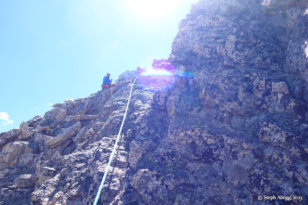 We linked Pitches 4+5 with a little bit of simulclimbing.