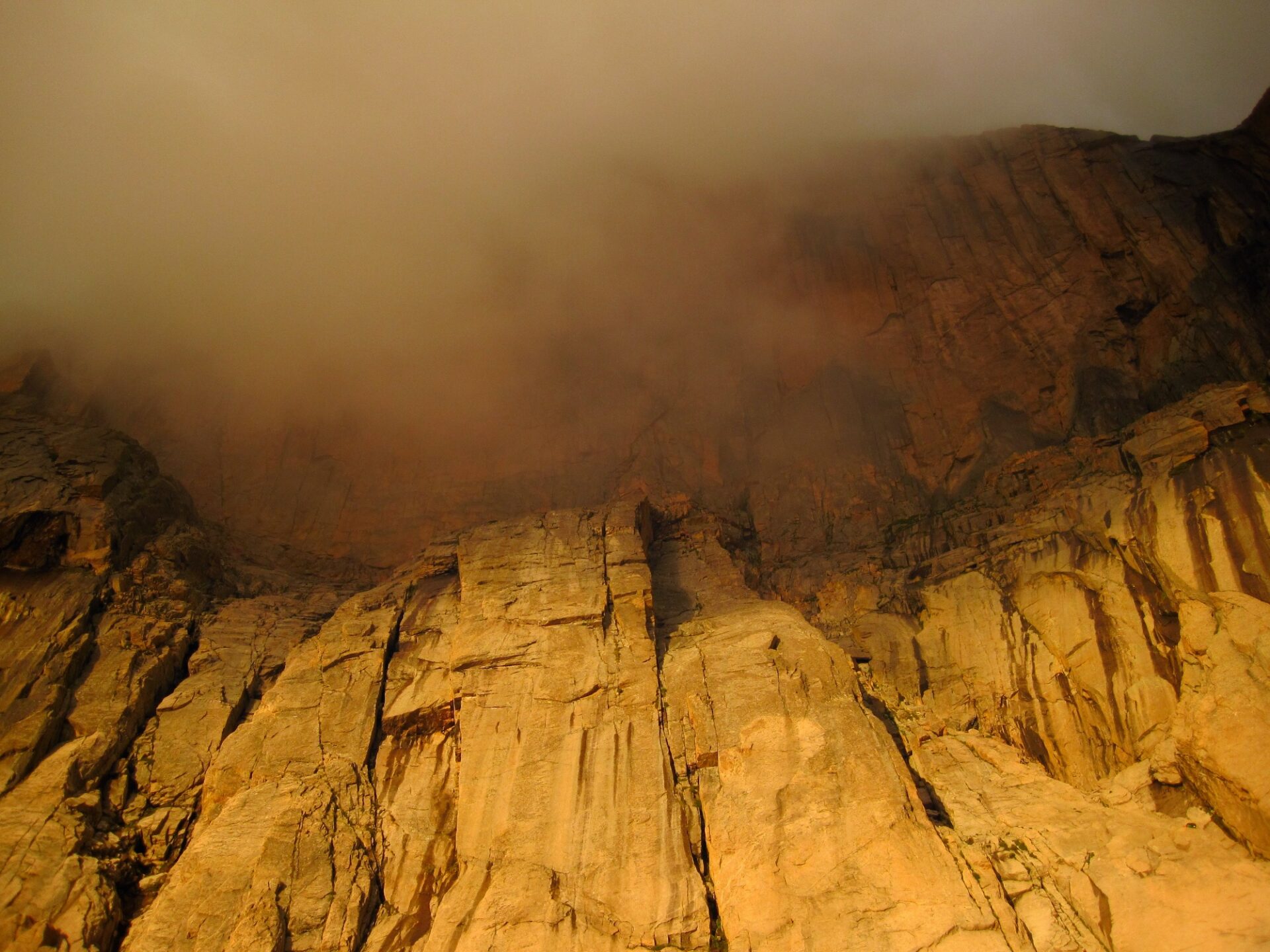 c. Clouds can move in quickly on Longs Peak. Fortunately these blew out just as quickly as they came.