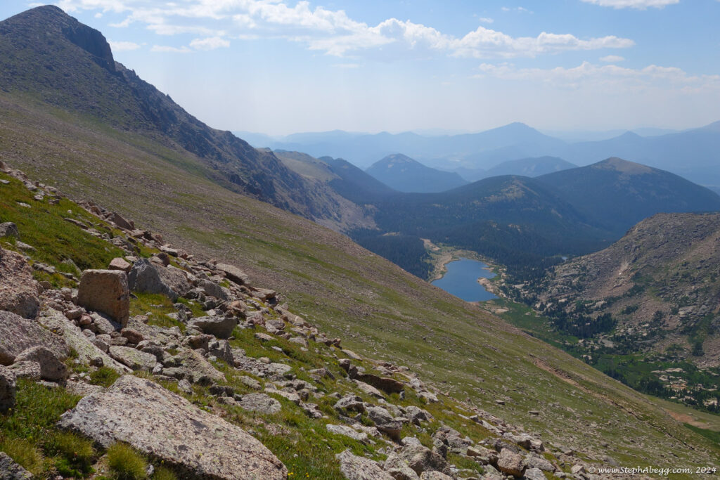 It was a great day of exercise. I stood on three summits (Hagues, Rowe Peak, and Rowe Mountain) and passed by Rowe Glacier Lake, which at 13,100 feet is the highest lake in RMNP.
