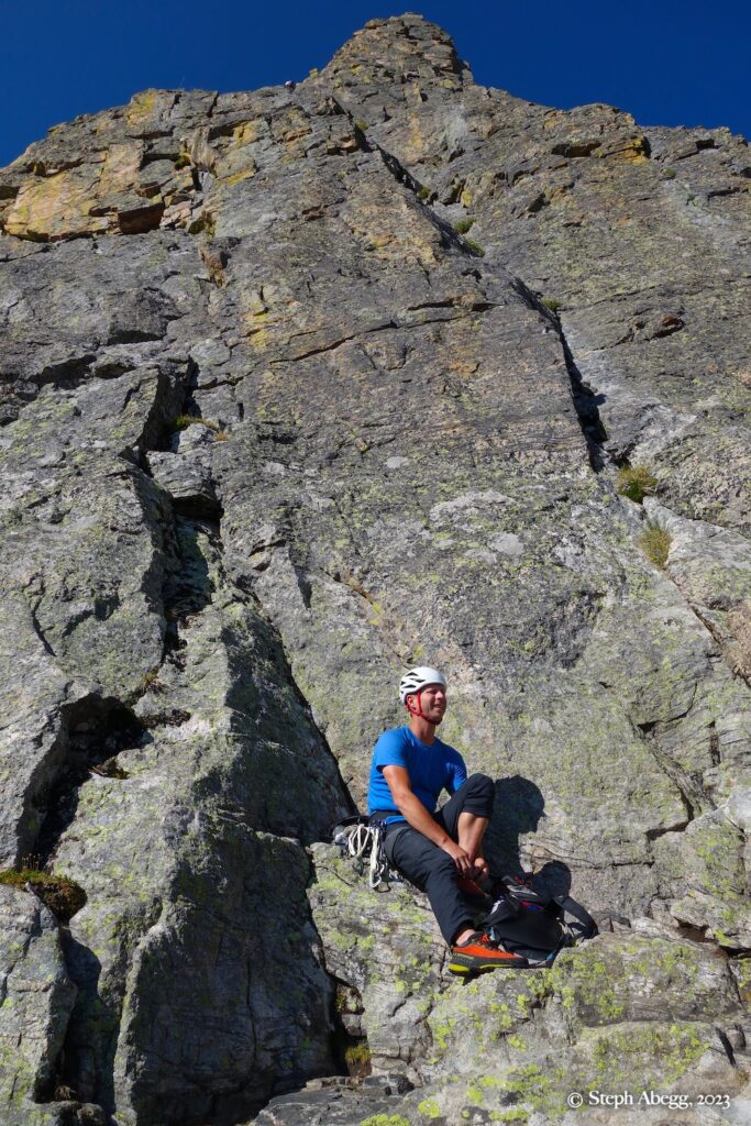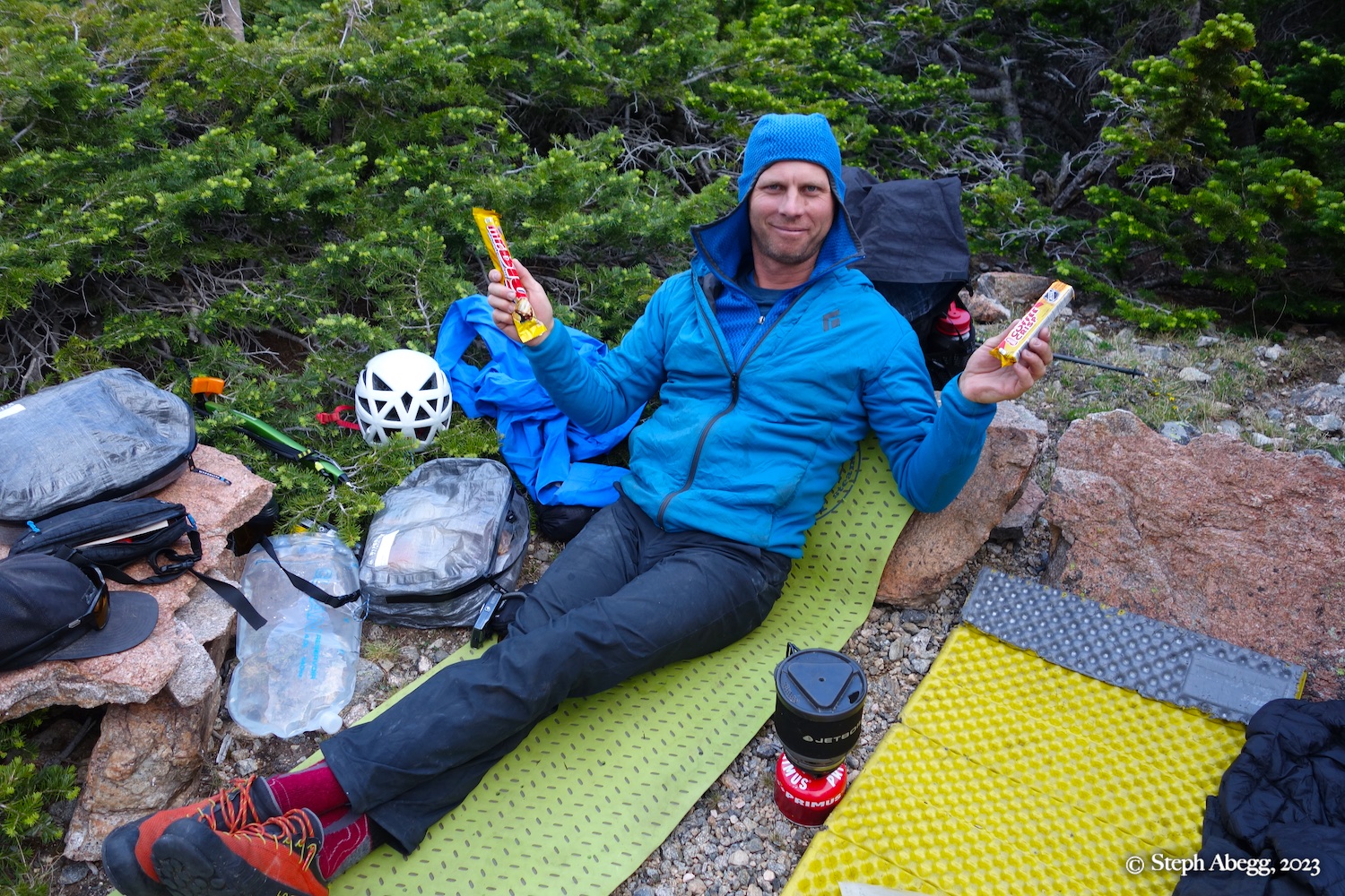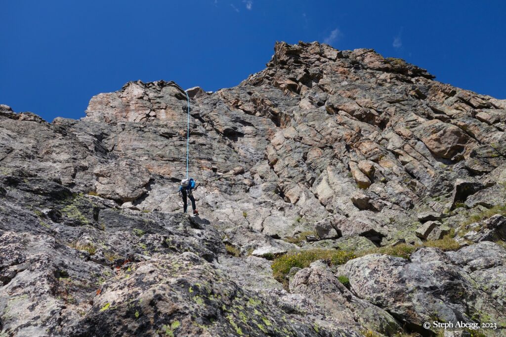 For the Northeast Ridge route, begin from sandy ledges 300 feet below the East Col and 75 feet left from the edge of the North Face.