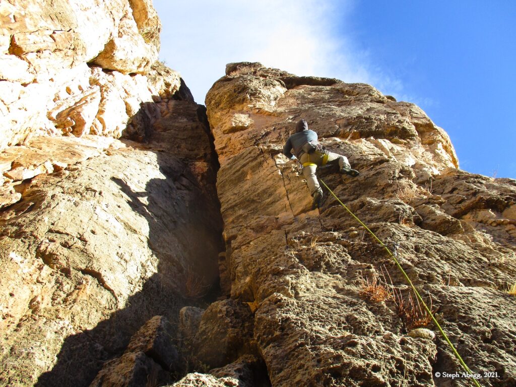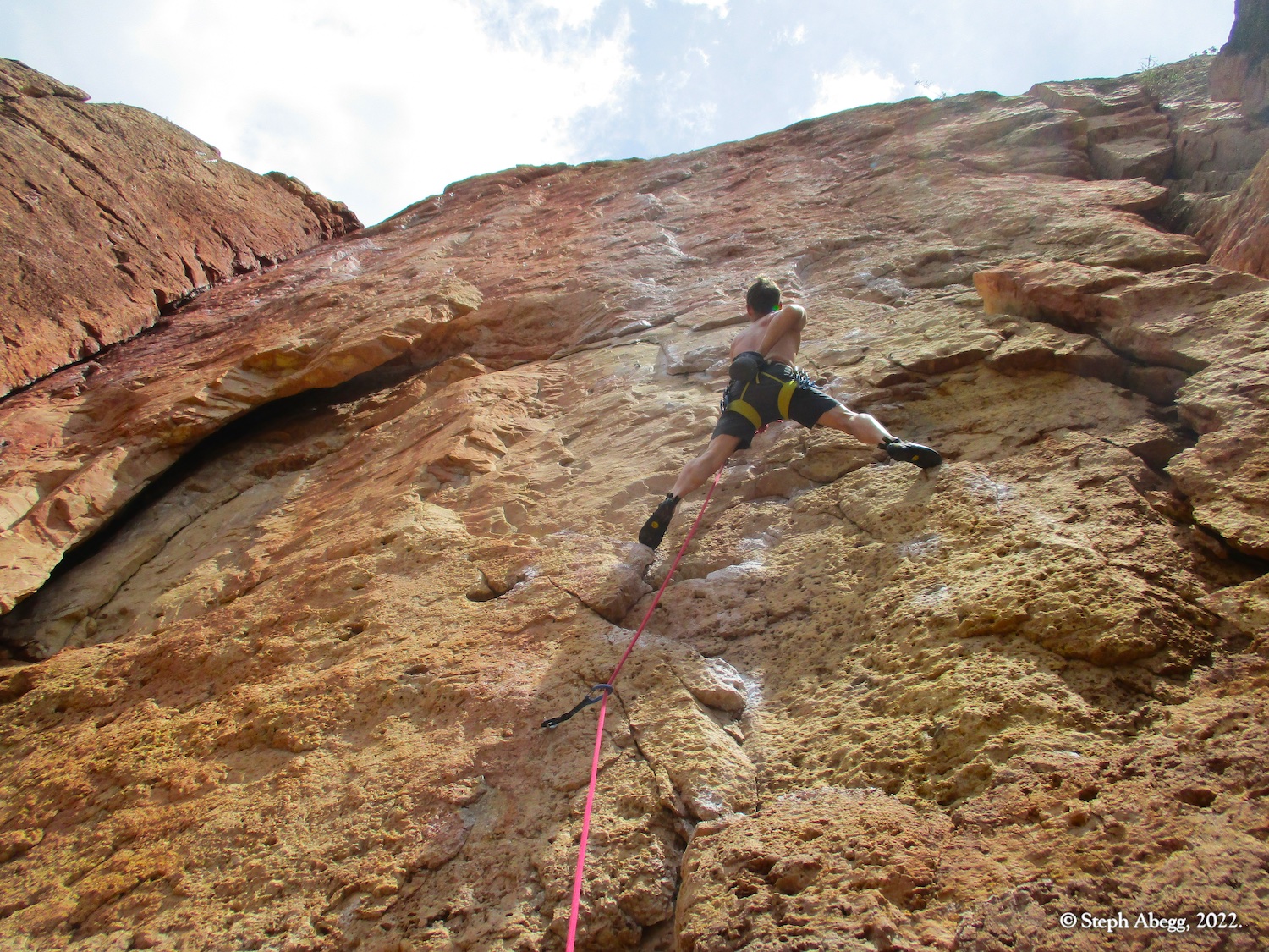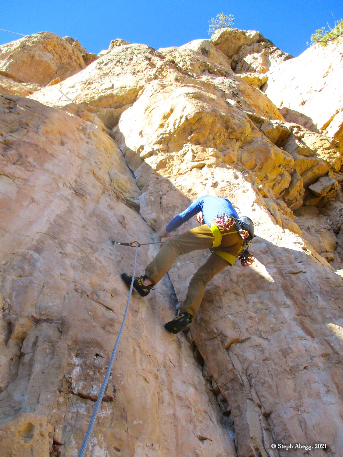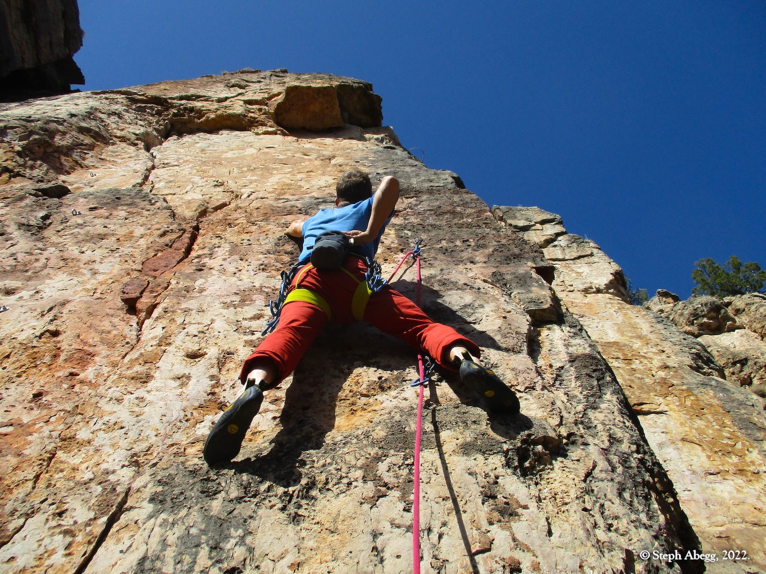 It had been a year since either Nate or I had been to Shelf, so it was time to return. I took off work on Friday and we enjoyed three days of steep limestone sport climbing in the sun and three nights hanging out in Nate's cozy 10x14 Canvas tent hotel and making dinner, reading, watching episodes of Yellowstone, and munching on peanut butter M&Ms. We climbed over 20 pitches from 5.9-5.11. Hard leading by Nate. Having climbed mostly moderate routes this fall (I was recovering from