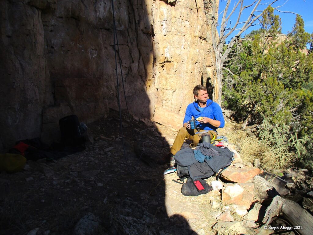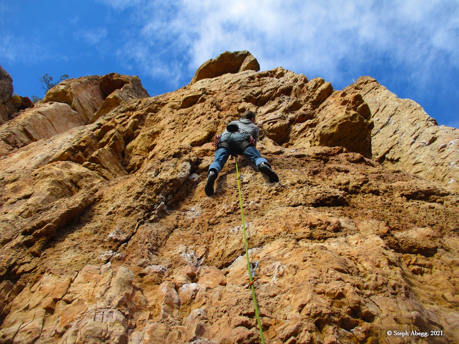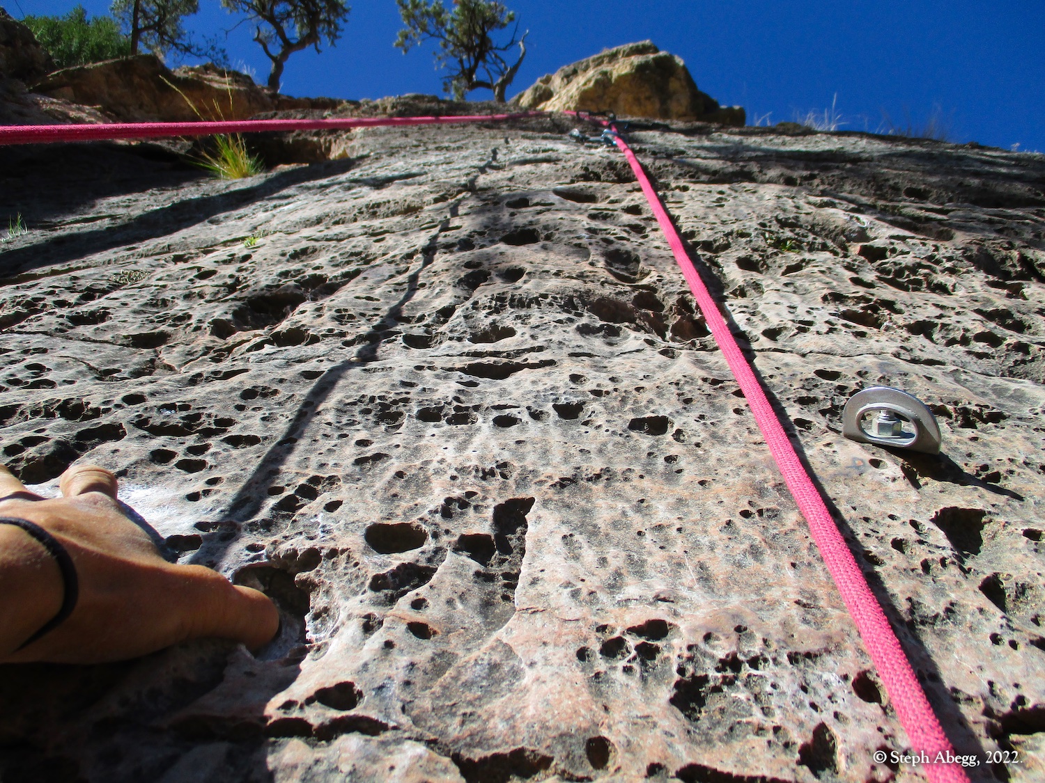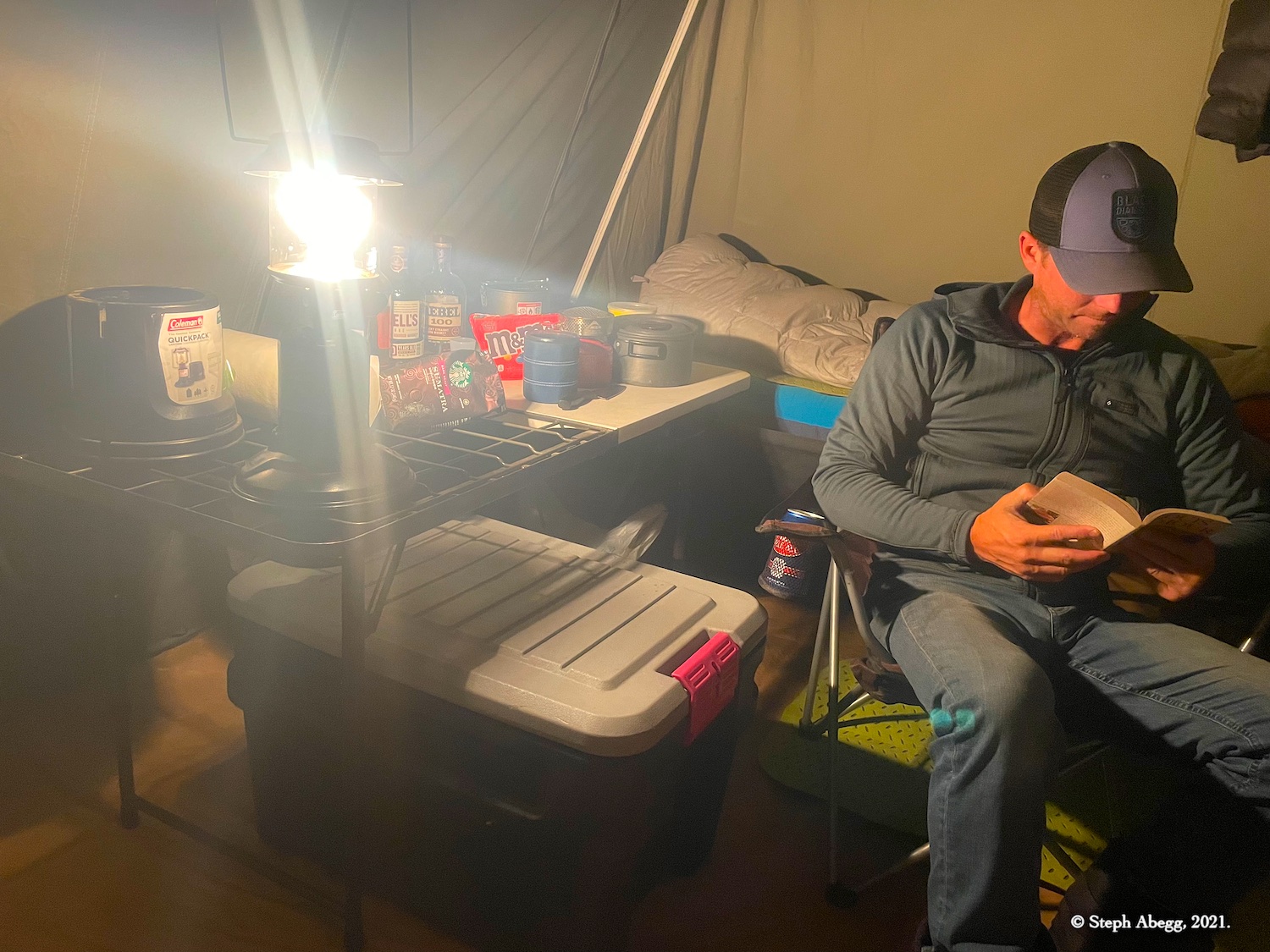 It had been a year since either Nate or I had been to Shelf, so it was time to return. I took off work on Friday and we enjoyed three days of steep limestone sport climbing in the sun and three nights hanging out in Nate's cozy 10x14 Canvas tent hotel and making dinner, reading, watching episodes of Yellowstone, and munching on peanut butter M&Ms. We climbed over 20 pitches from 5.9-5.11. Hard leading by Nate. Having climbed mostly moderate routes this fall (I was recovering from