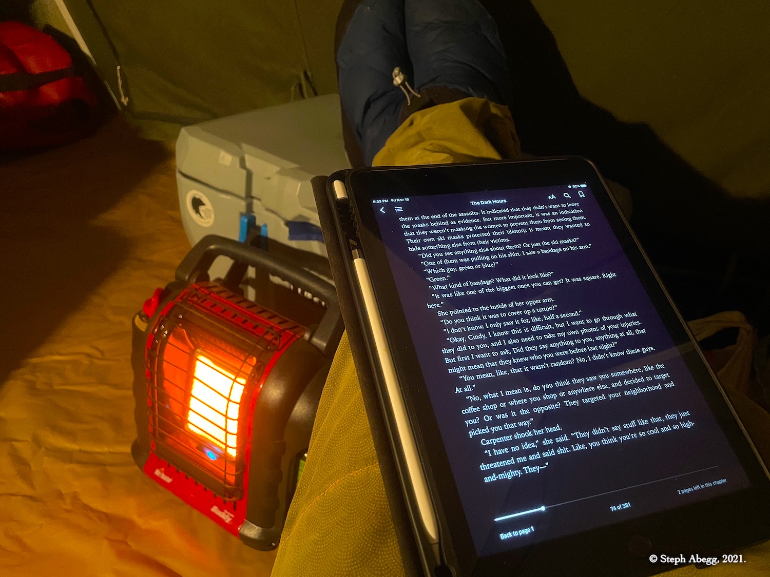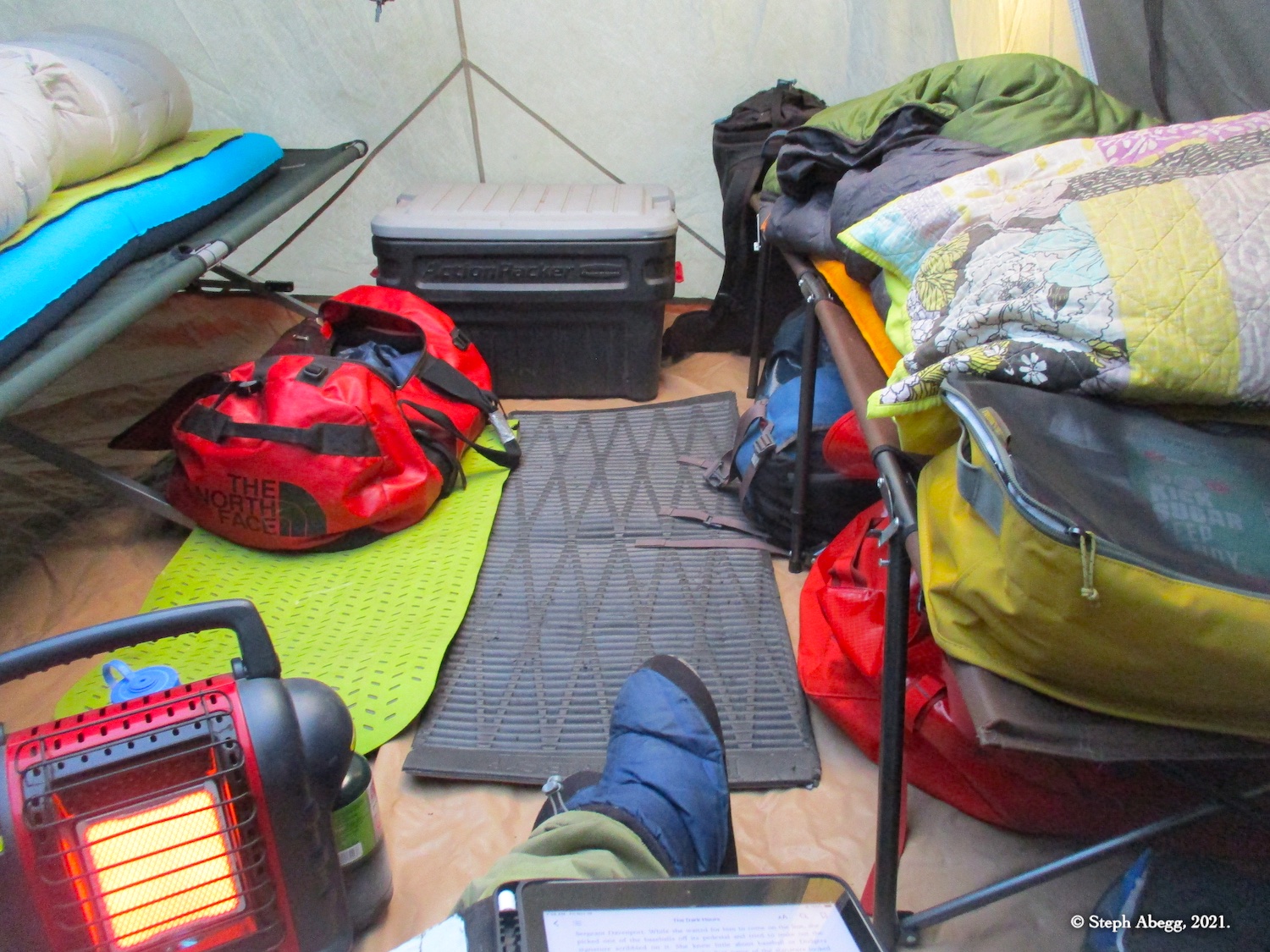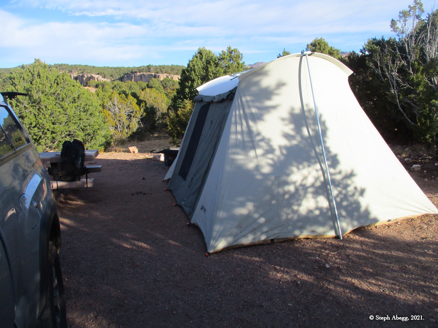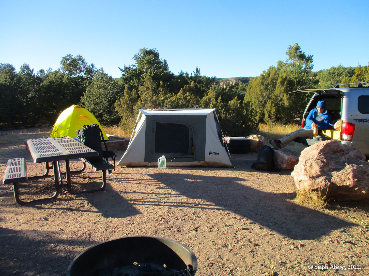 It had been a year since either Nate or I had been to Shelf, so it was time to return. I took off work on Friday and we enjoyed three days of steep limestone sport climbing in the sun and three nights hanging out in Nate's cozy 10x14 Canvas tent hotel and making dinner, reading, watching episodes of Yellowstone, and munching on peanut butter M&Ms. We climbed over 20 pitches from 5.9-5.11. Hard leading by Nate. Having climbed mostly moderate routes this fall (I was recovering from