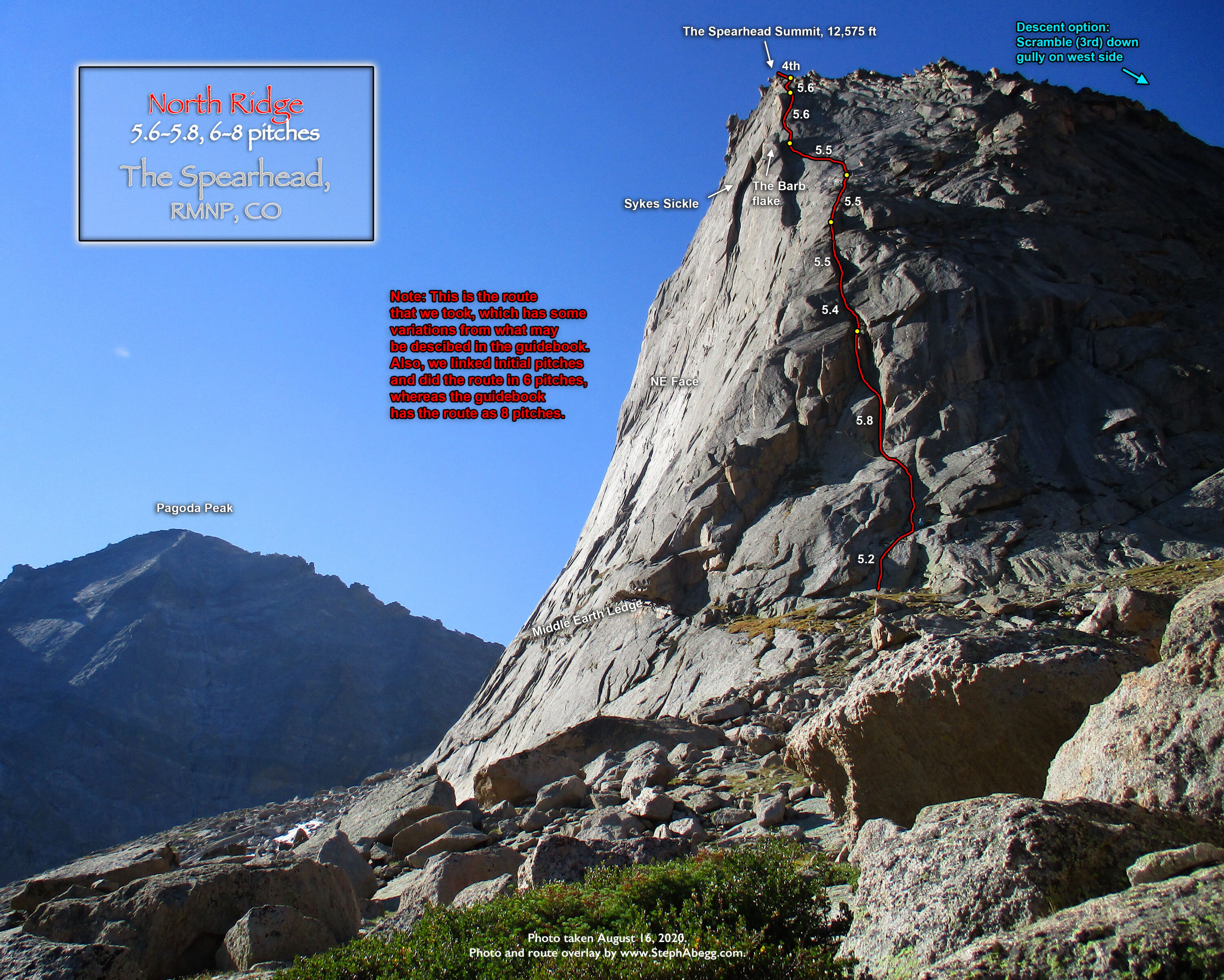 North Ridge (5.6-5.8, 8p) of Spearhead. The