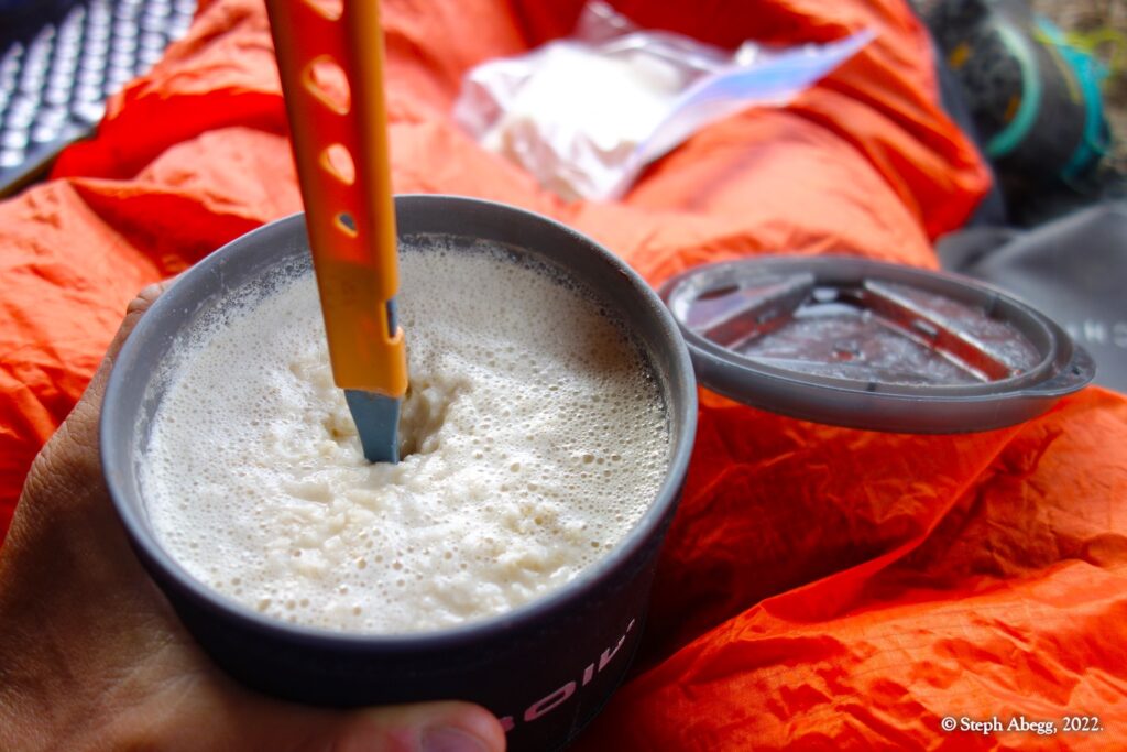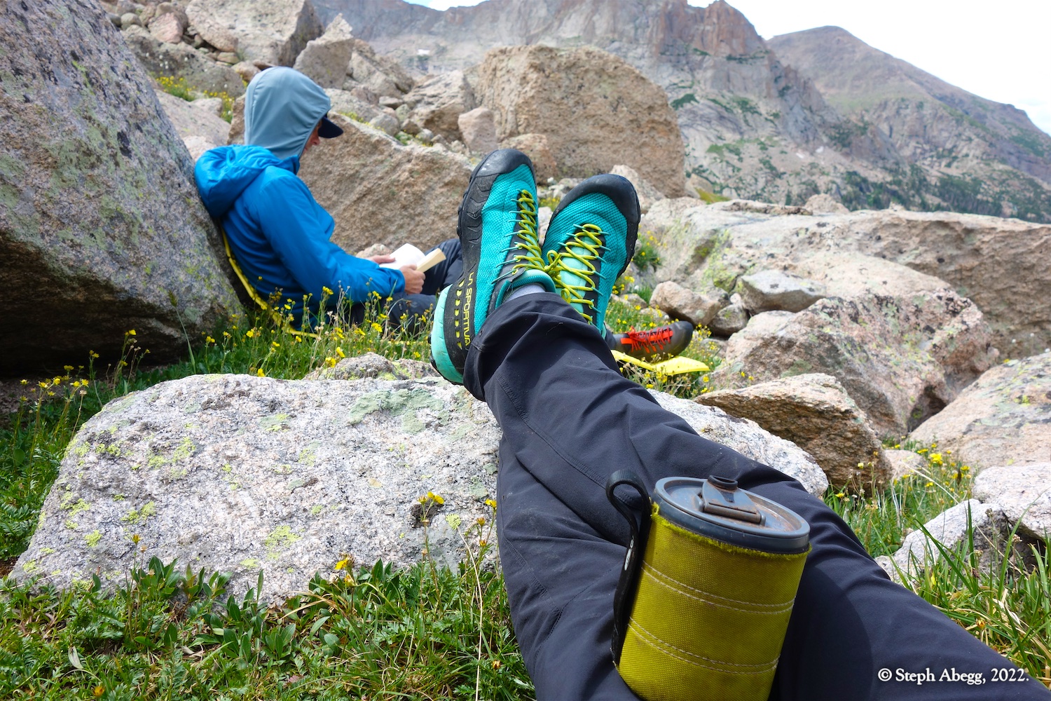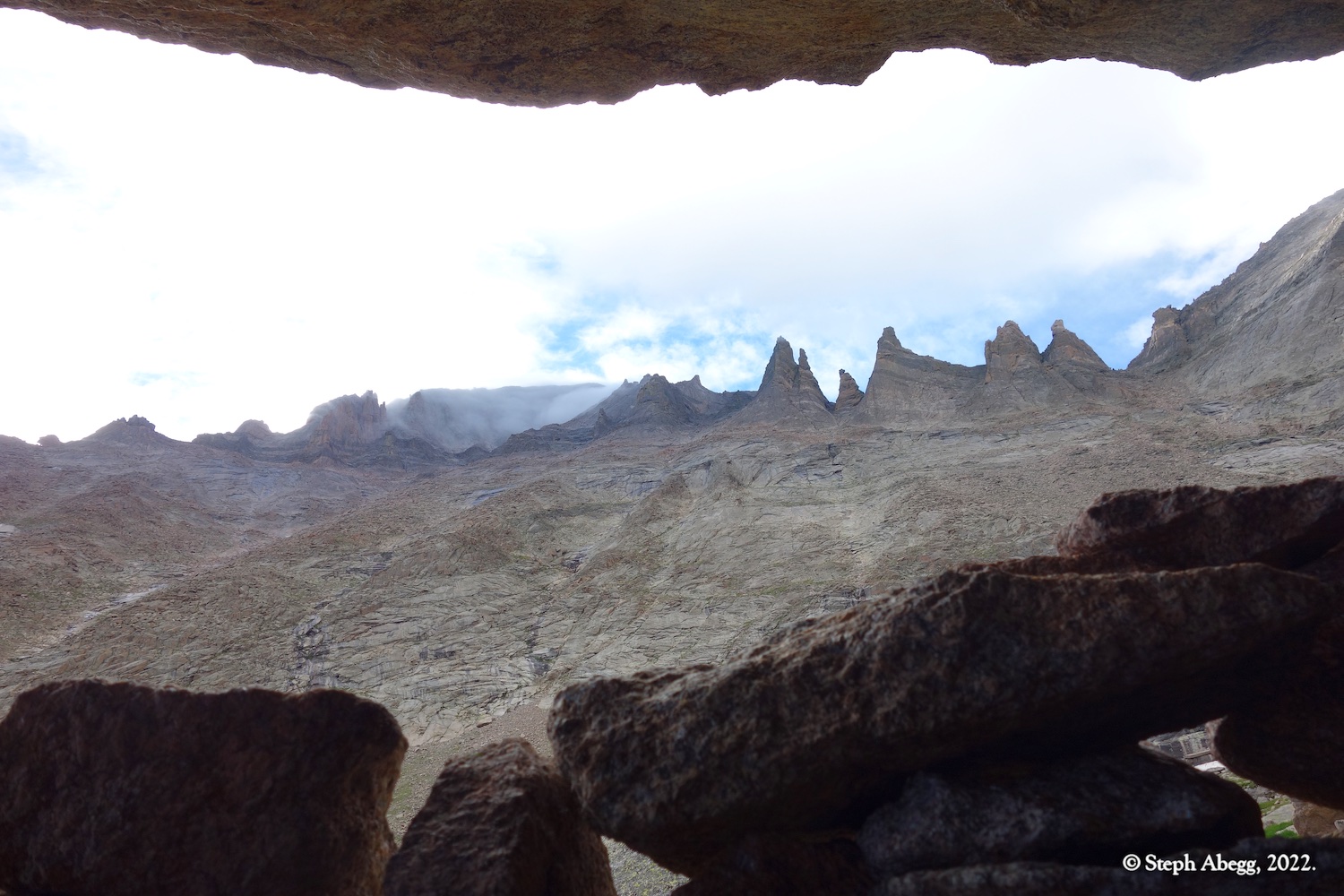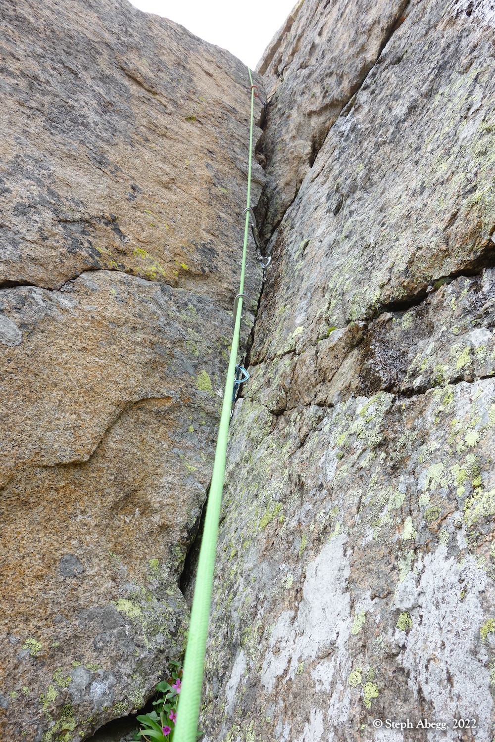 The forecast for Friday afternoon was for heavy rain. We felt we got lucky when we arrived at our bivy completely dry, the skies threatening rain but nothing materializing. But overnight the heavy rains arrived, and on Saturday morning the surrounding summits were shrouded in wet clouds. We opted for a lazy morning reading and drinking coffee. Mid-morning we seemed to be getting weather window, so we headed out to climb the
