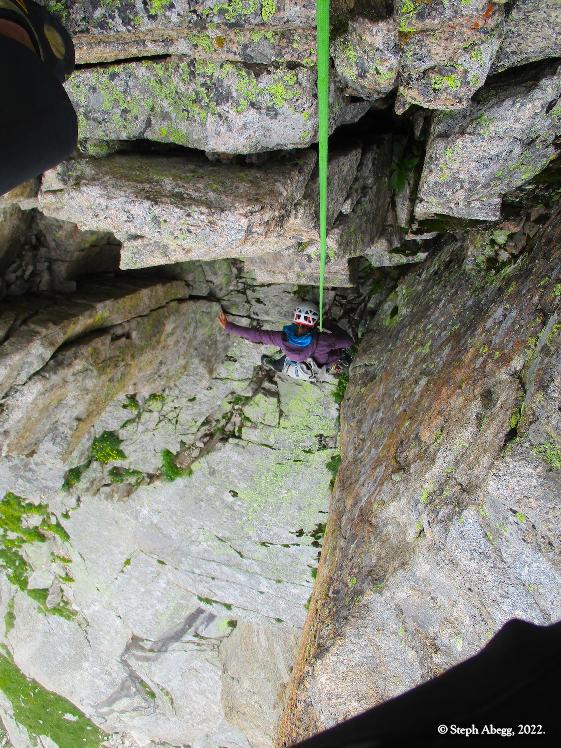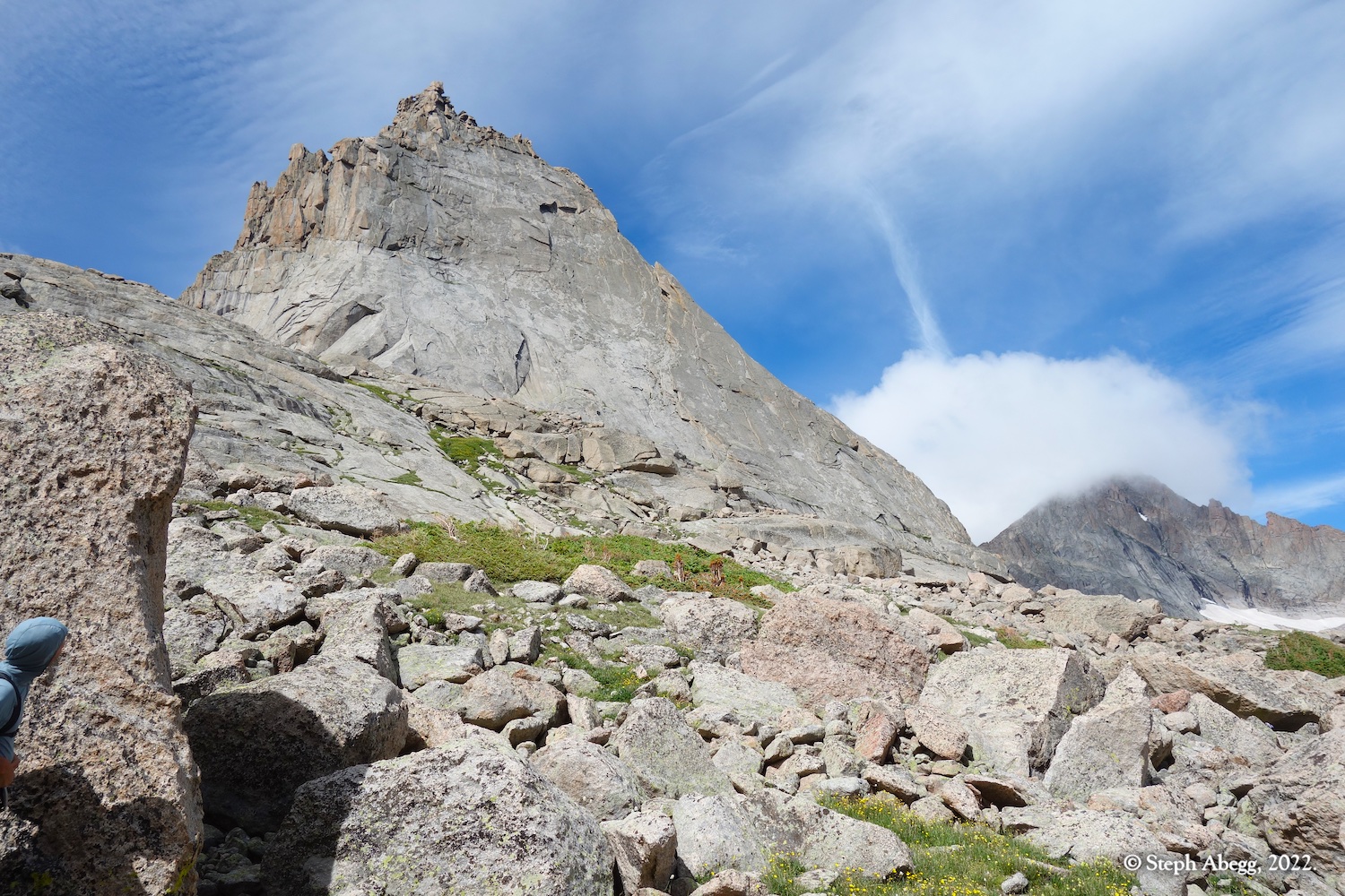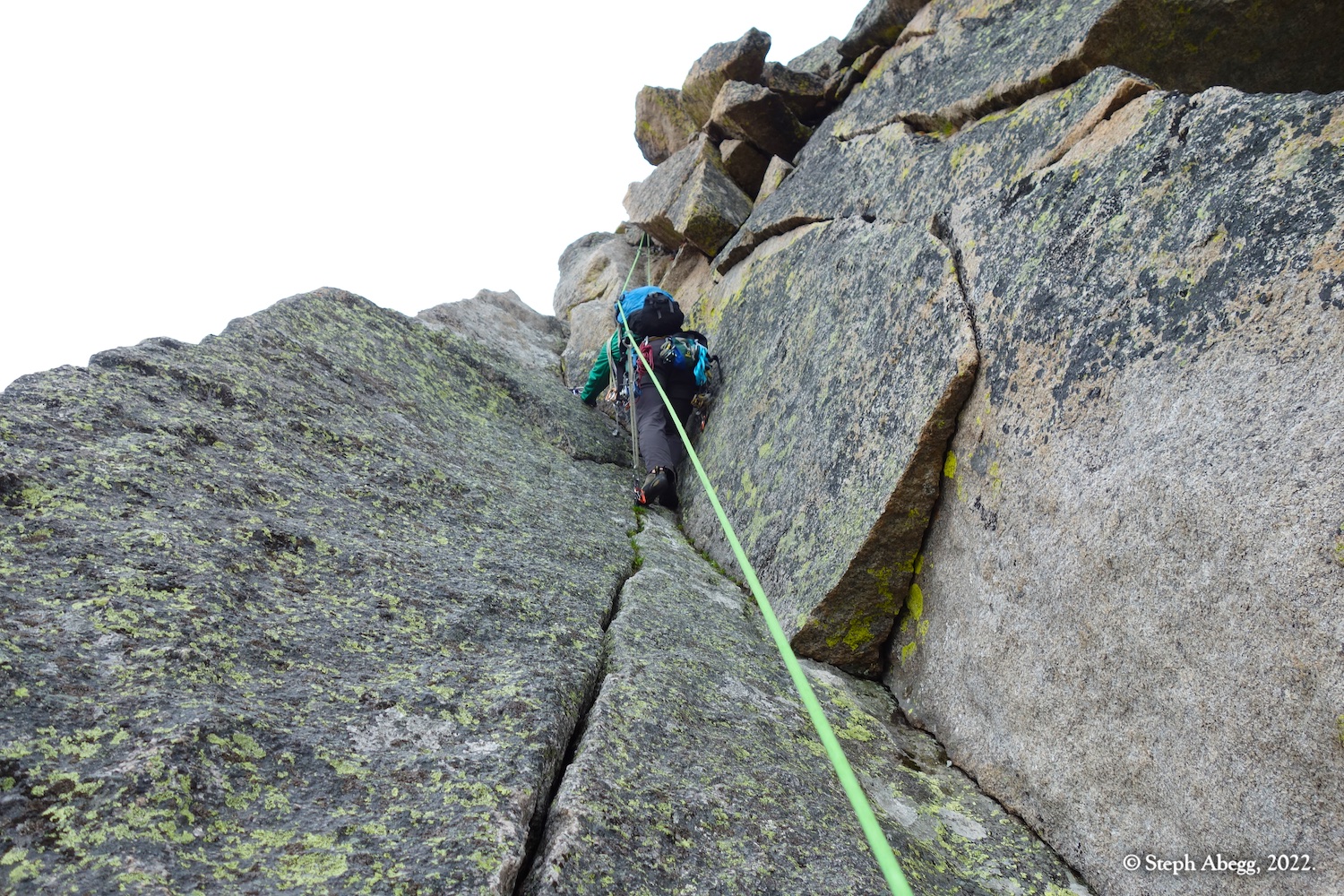 North Ridge route ascends the long ridge (really a narrow face) just right of the Northeast Face of Spearhead. The rock is excellent and the climbing is exhilarating. Several variations exist. Neither Nate nor I had climbed this moderate classic and we figured the weather made it a good day for a lower commitment route. It began to rain on us two pitches from the top, but we finished the route, and then spent the afternoon drying off back at our bivy, under improving weather.