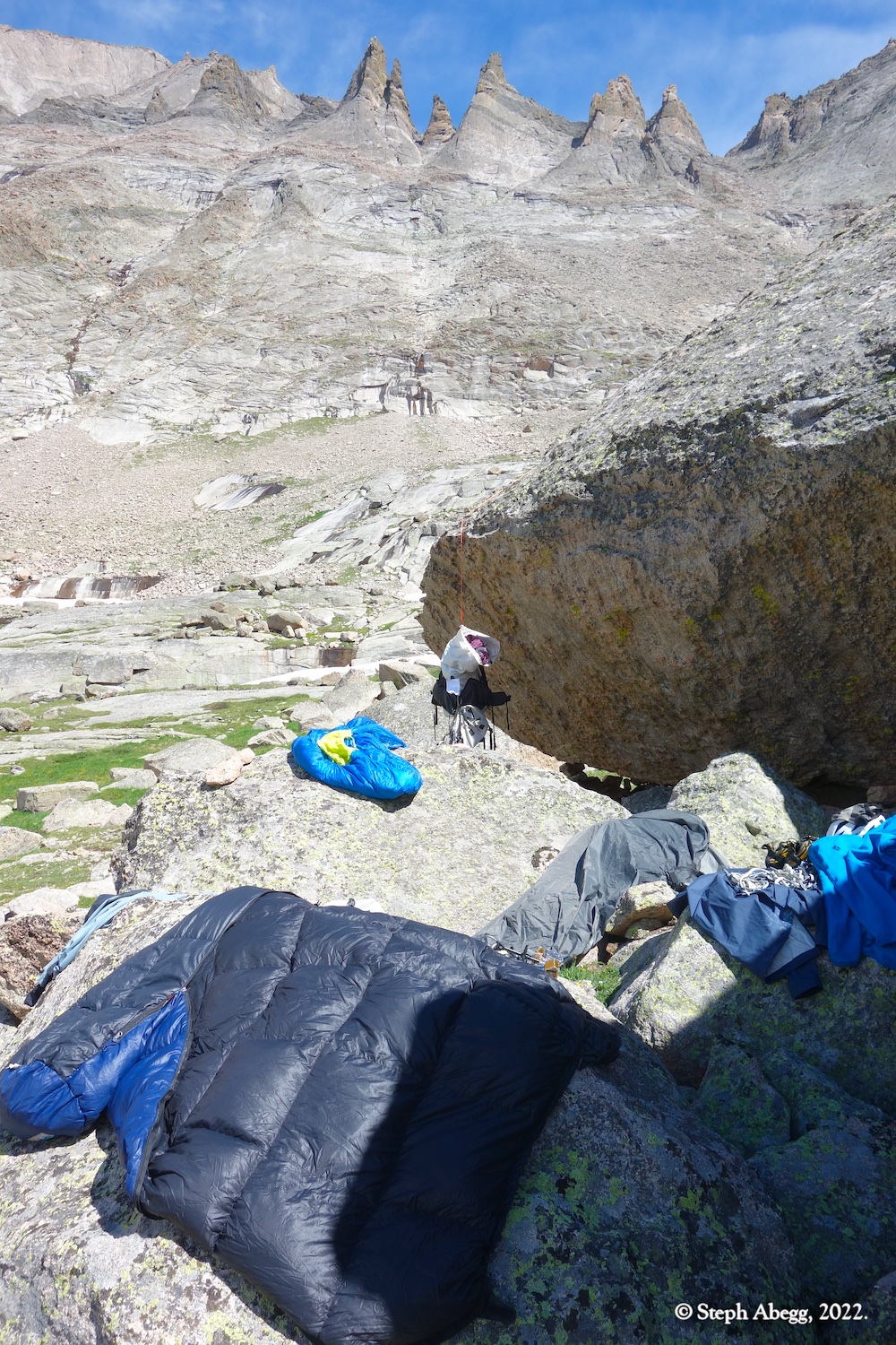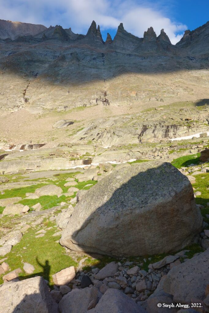 East Prow (5.9+/10b, 6p) on The Spearhead. We had such a good weekend that we decided to return the next weekend and climb two more routes. I secured a bivy permit for Upper Glacier Gorge (need to be climbing a route that is at least four pitches to qualify for a bivy permit), and Nate and I bivied up there for two nights (Friday and Saturday nights) at our favorite bivy location below Spearhead.