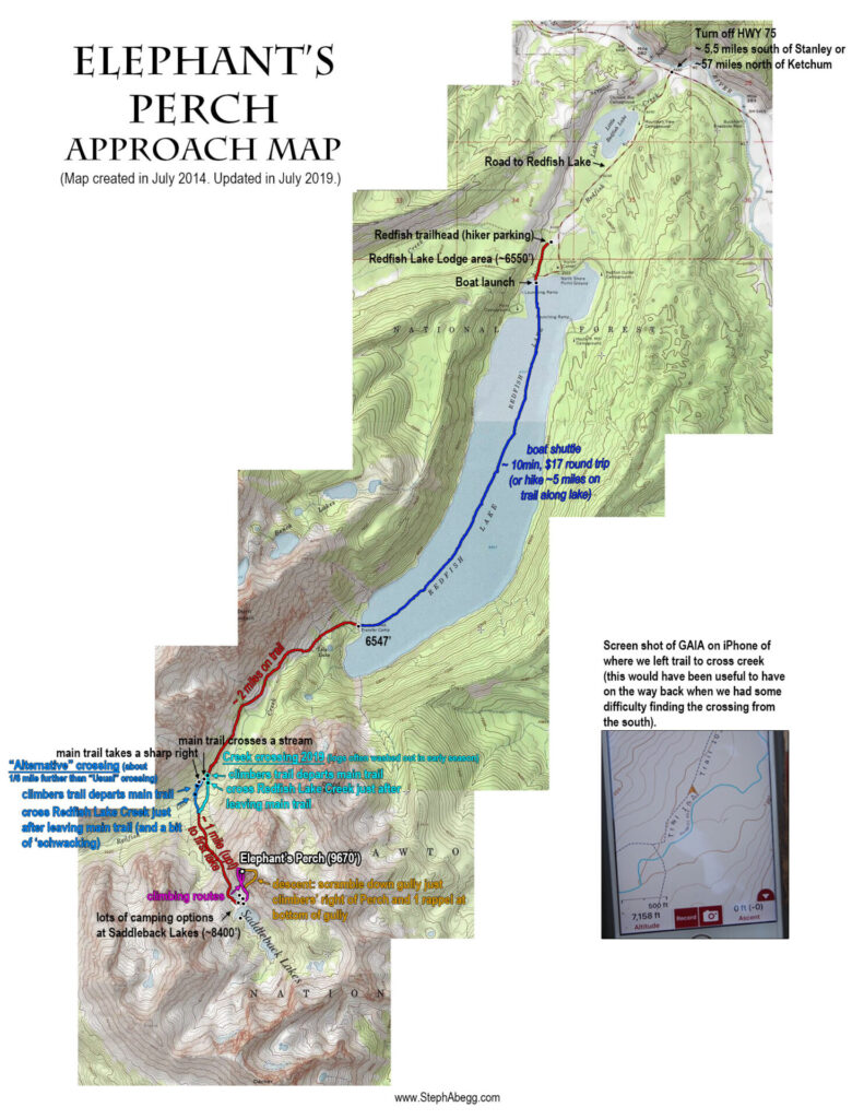 Photo descriptions: 1. View of the Sawtooths from the road between Ketchum and Redfish Lake. The burned trees are actually from the Hell Roaring Fire of July 2014, which had occurred when I was climbing the Perch in July 2014. (Here's a photo taken during my 2014 trip of the smoke.) 2. Leaving the Redfish hiker parking lot. It's a short hike to the marina from here. 3. Looking a bit out of place as we hike to the boat dock to catch the shuttle across Redfish Lake. 4. Shuttle boat signage. 5. Much better than hiking 5 miles around the lake... 6. On the trail. Photo by Alex. 7. The Perch in profile. This was taken shortly before we left the main trail to head up climbers' trail to the Perch. 8. Where we left the main trail to head up climbers' trail to the Perch. 9. Log crossing. This is a different log crossing than in 2014. I suspect it washes out every year and is rebuilt. 10. Our camp at Saddleback Lakes below the Perch. 11. Hang your food or you will come back to camp and it will all be gone and there will be a bunch of fat chipmunks waddling around. 12. Alex contemplating his second dinner... 13. Nope, the lighter is not edible. 14-15. Alex relaxing at camp doing some sketching. |