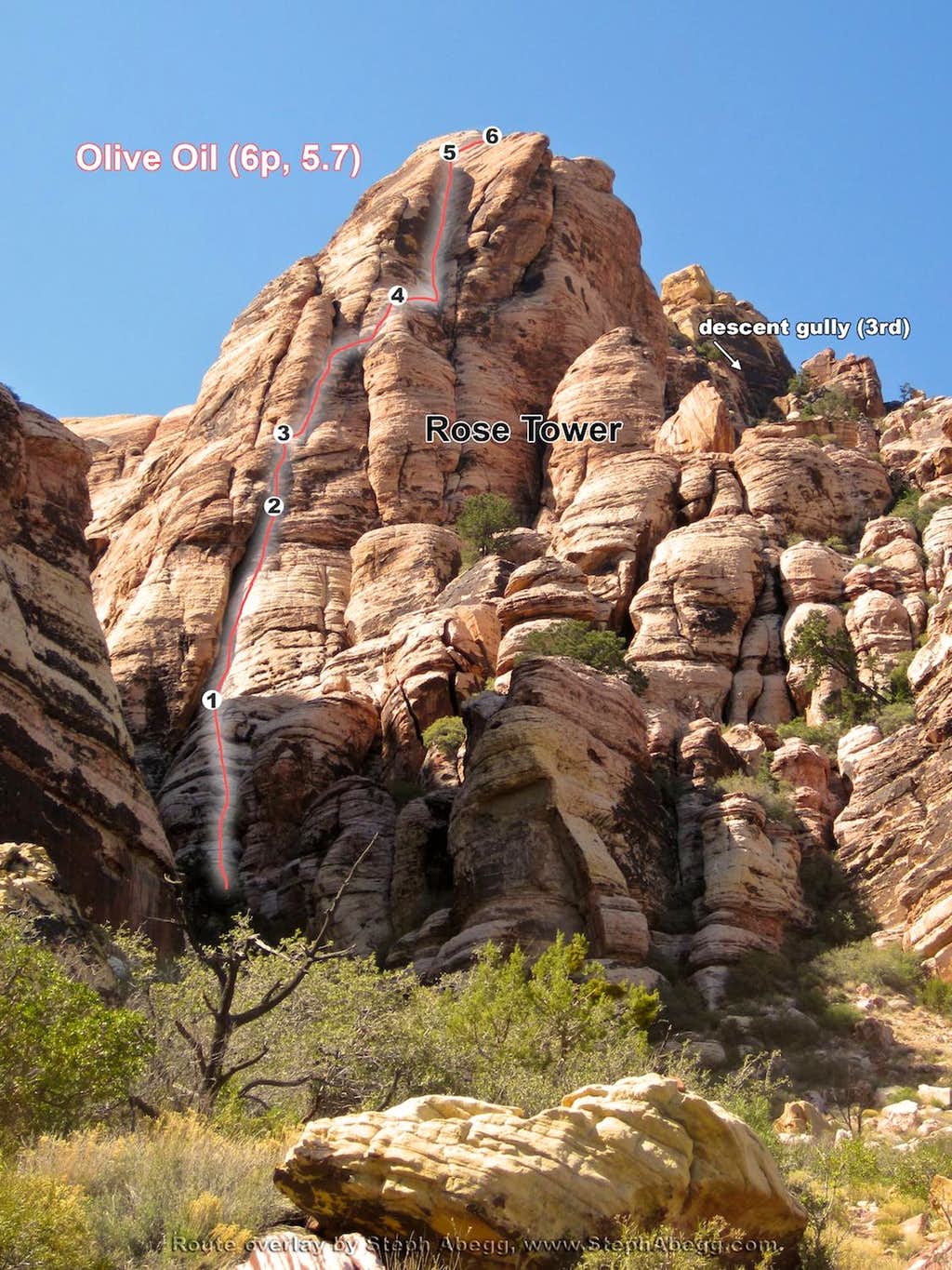 Olive Oil is one of the best Red Rocks moderates with its excellent, varied climbing on great rock. Plus, the descent is a 3rd class walk-off, which Dave and I appreciated after the previous day's rope-sticking issues. It was a really fun route providing a spicy level of exposure and challenge. The only negative part of the awesome route was the fact that the final chimney was a bit painful to our freshly sunburned skin.