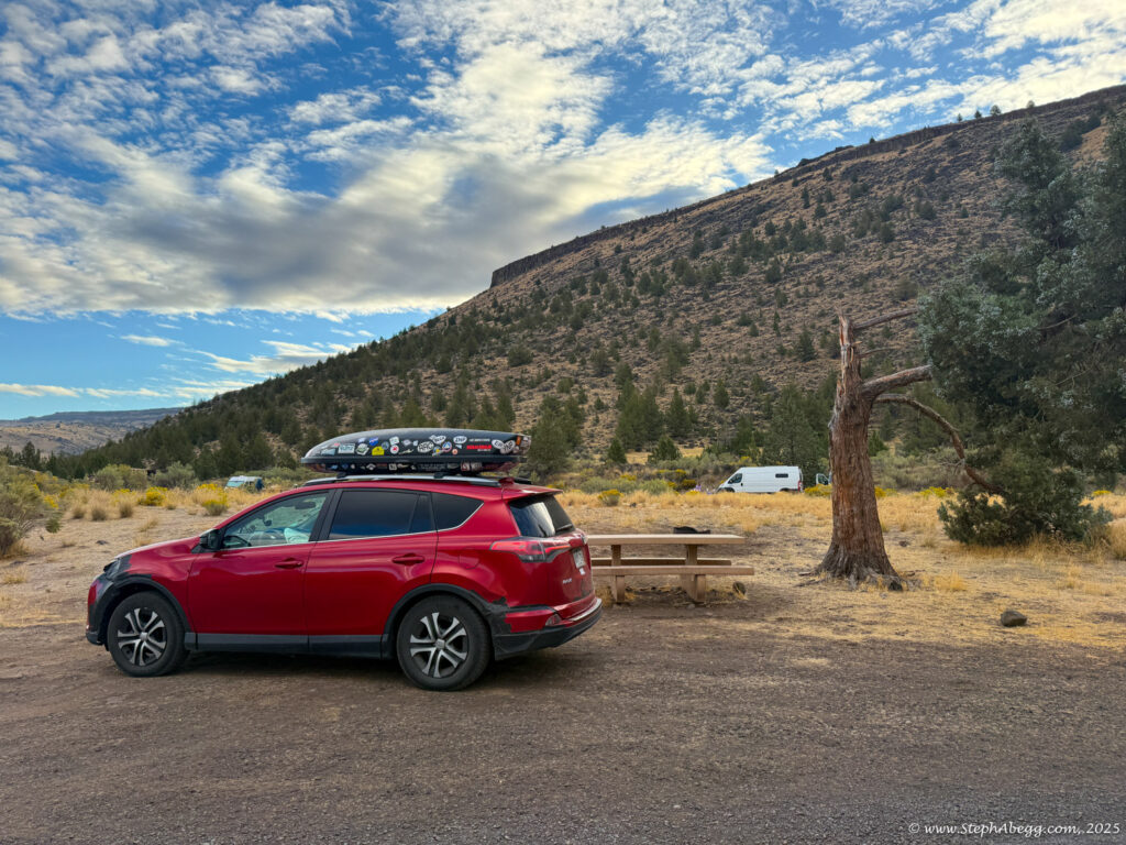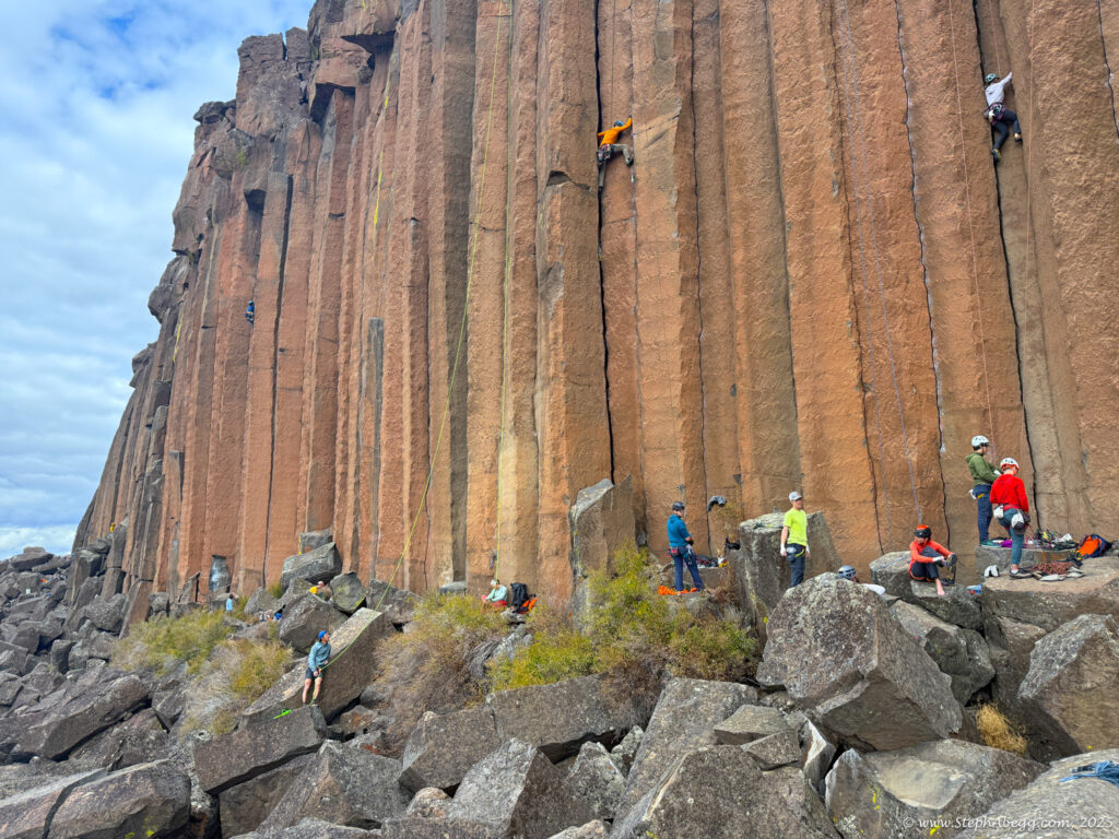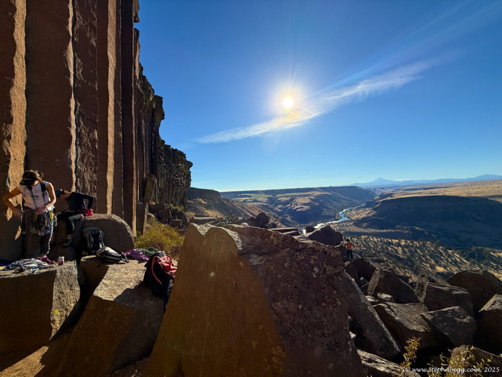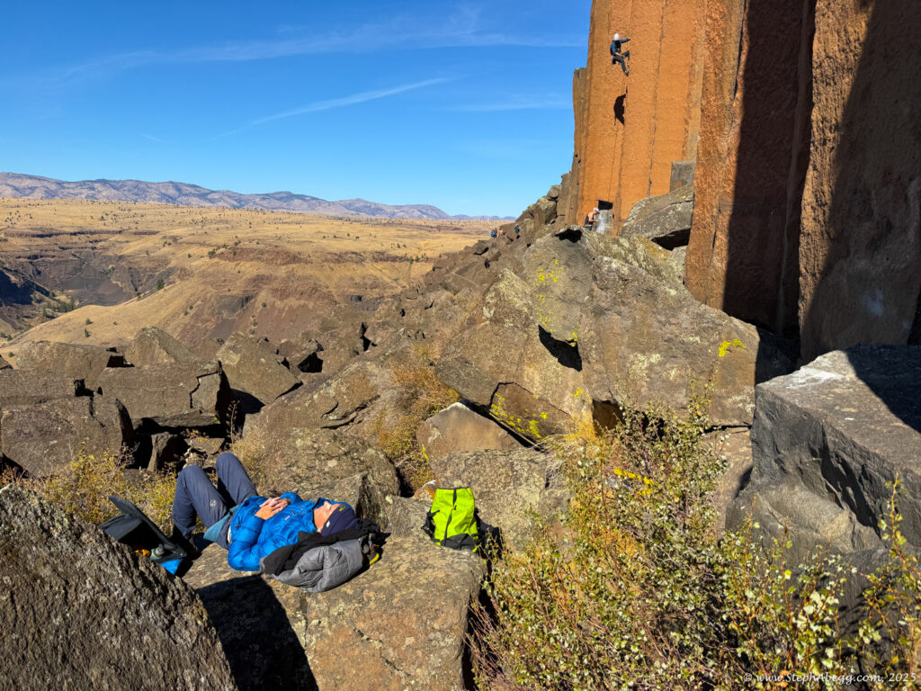 Smith Rock, I spent the weekend climbing at Trout Creek. On Saturday, I teamed up with Trevor and his girlfriend Lurana (I’d first met Trevor the year before in Yosemite). We each got in about eight pitches, from 5.10 to 5.12+. With so many friendly climbers around and plenty of ropes hanging, I only led one pitch—