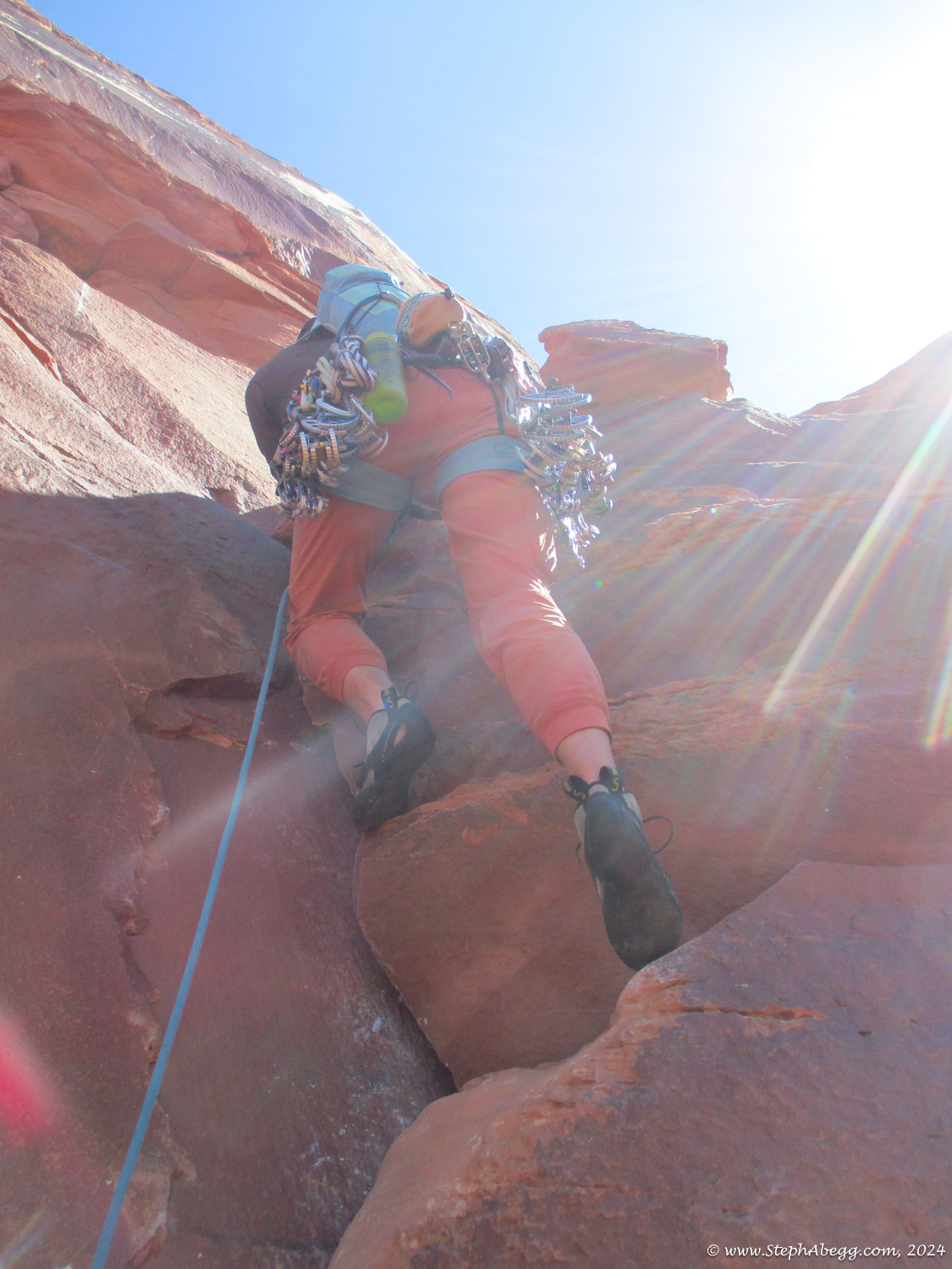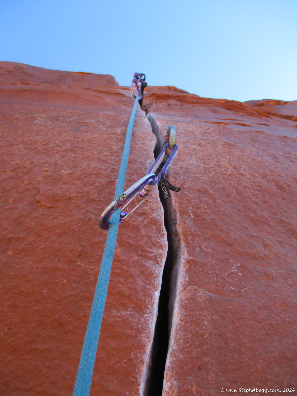 The initial plan of this long weekend climbing trip was to go to the Black Canyon of the Gunnison. But an unsettled weather forecast forced us to pivot. We decided to go to Moab and climb a few classic routes. On Saturday, we climbed two routes on Castleton Tower: