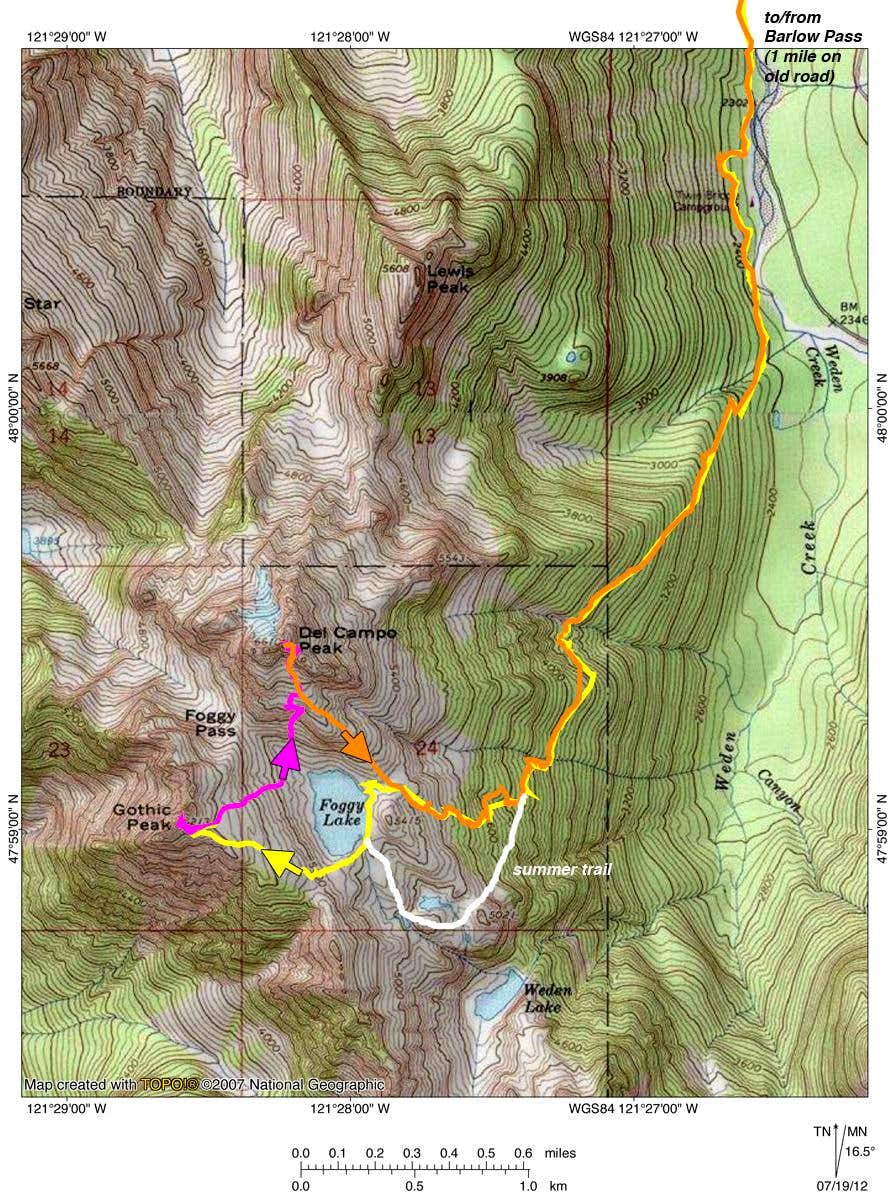 - Gothic Peak (scramble from Foggy Lake, 3rd)