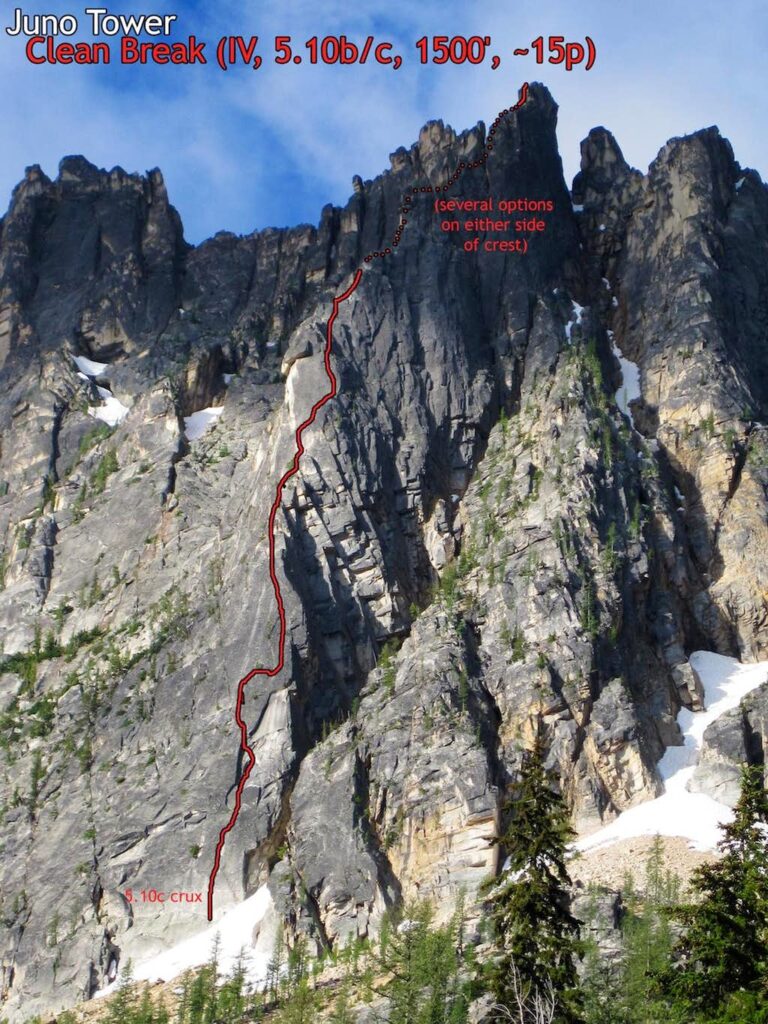 Juno Tower, Clean Break (5.10b/c, 1500′, 15 pitches)