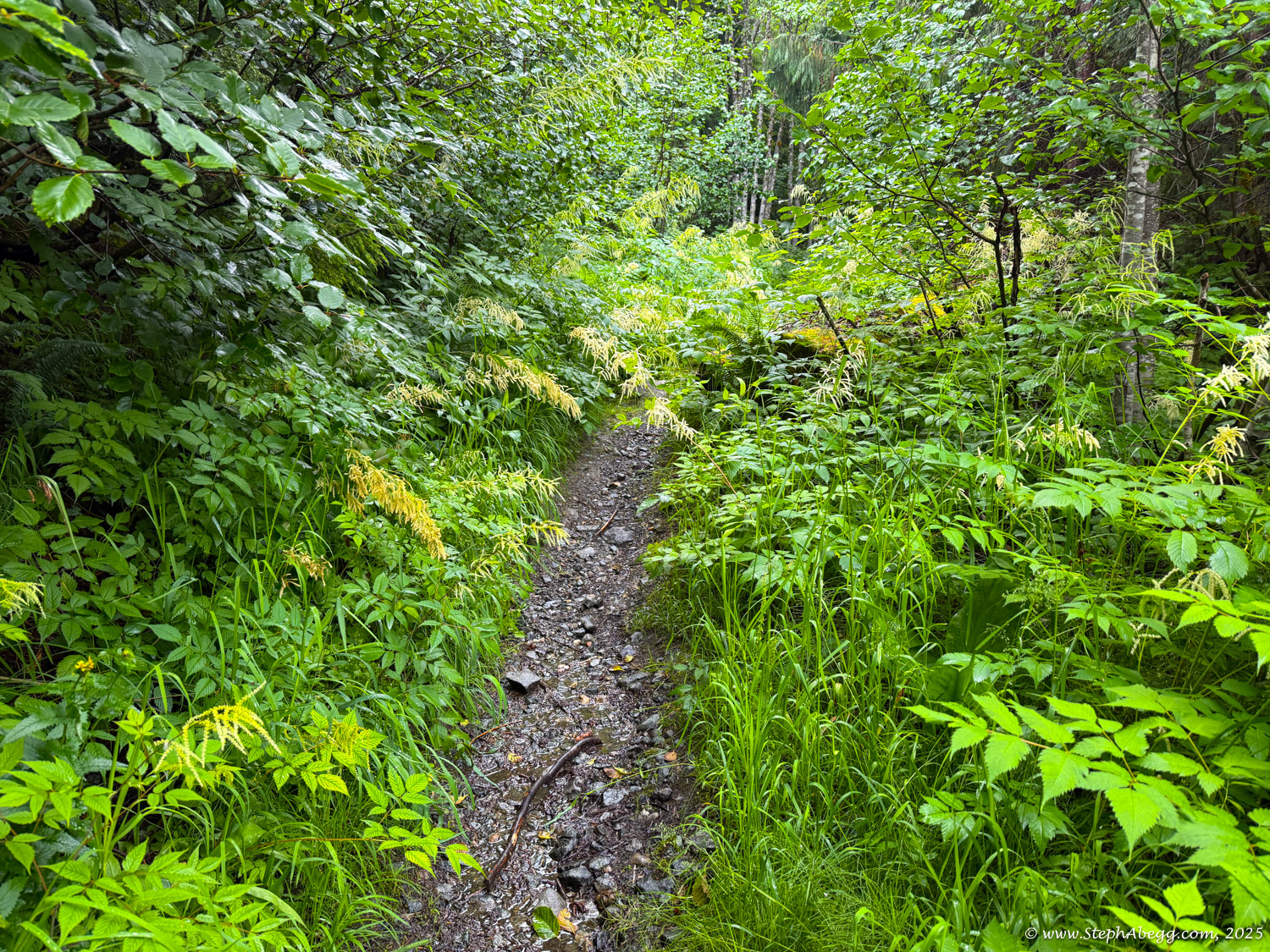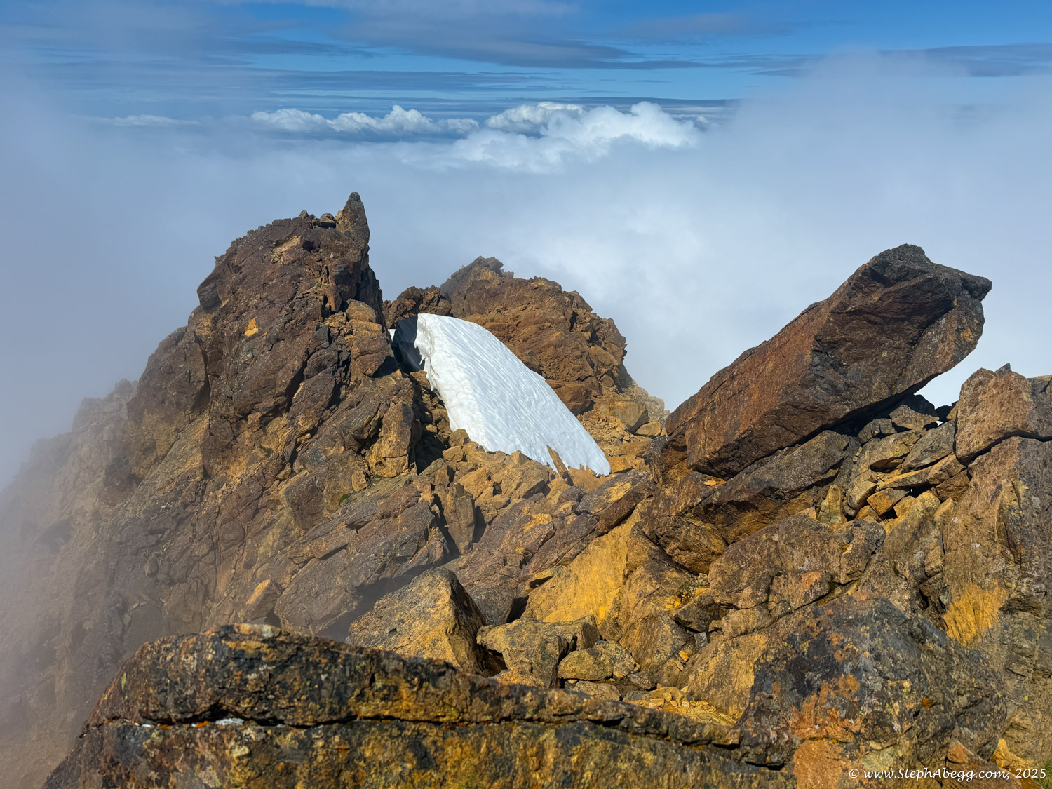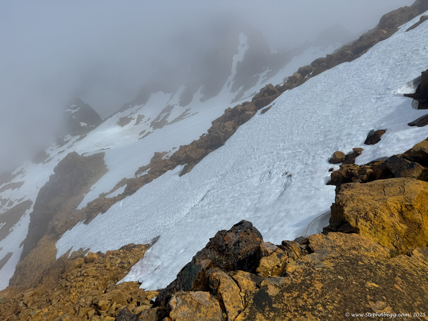 North Twin is the second-highest peak in the rugged Twin Sisters Range, located about 9 miles southwest of the glaciated giant, Mount Baker. On a clear day, the summit offers an unobstructed view of the nearby volcano—but what truly sets it apart is the exceptional quality of the scrambling. The range is composed of dunite, a rare ultramafic rock made almost entirely of olivine. From a climbing perspective, this coarse-grained rock is incredibly grippy—almost like natural sandpaper. North Twin boasts roughly 1,500 vertical feet of sustained Class 3 scrambling on this solid, textured rock. The only drawback is the moderately long approach, made more tedious by the closure of the old logging road. It is nearly 5,500 vertical feel from where you park your car to the summit. Currently, the most efficient option is to bike in—the 5+ miles and 2,500+ vertical feet of uphill riding is a serious grunt, but the bike down is much quicker than hiking.