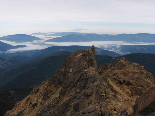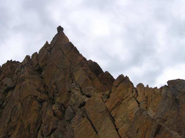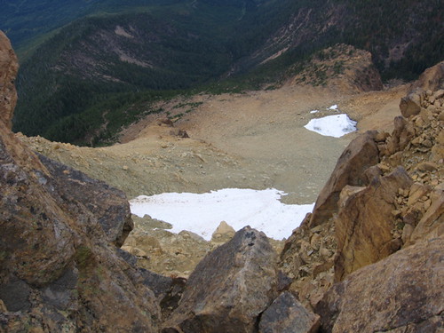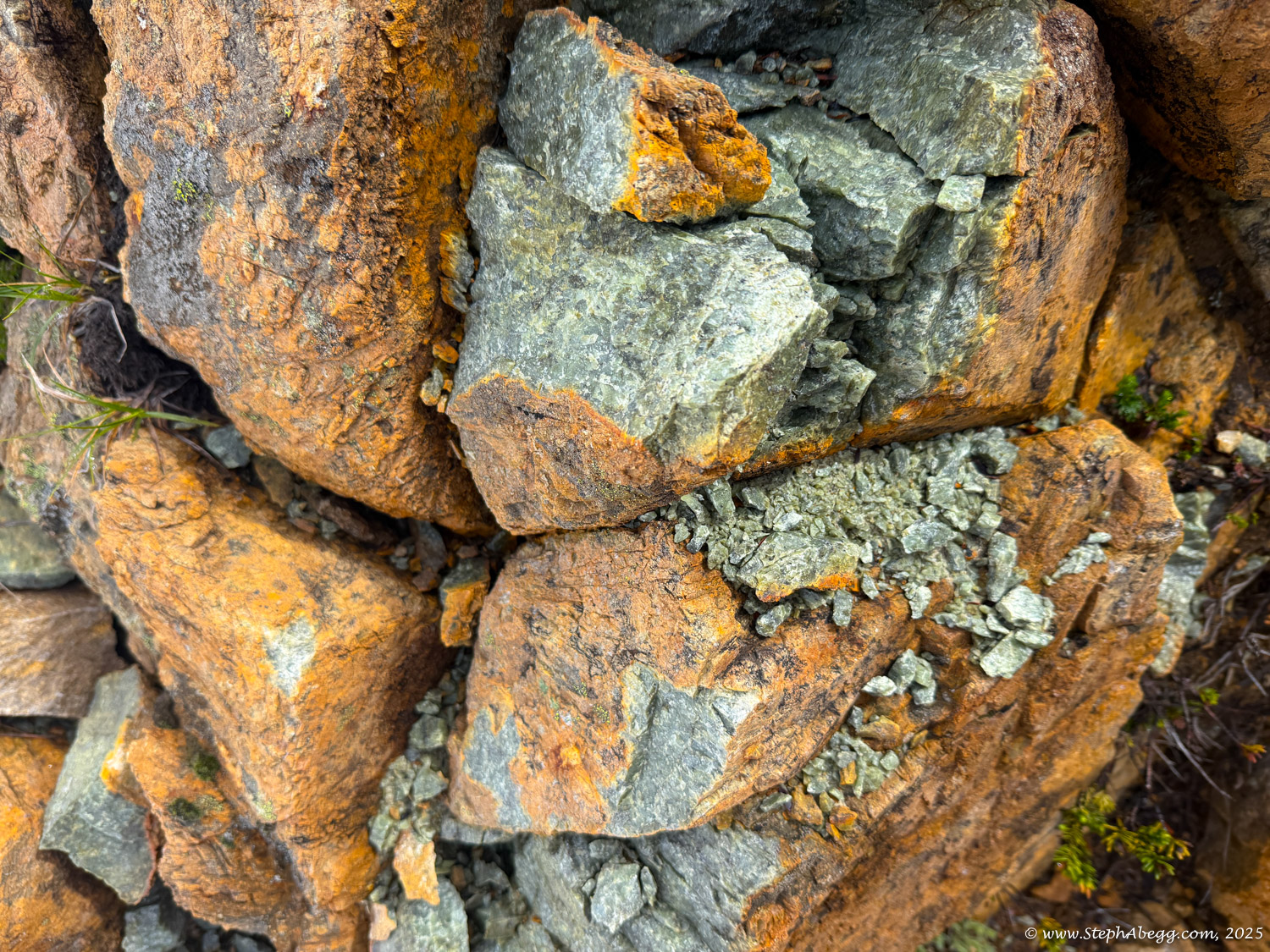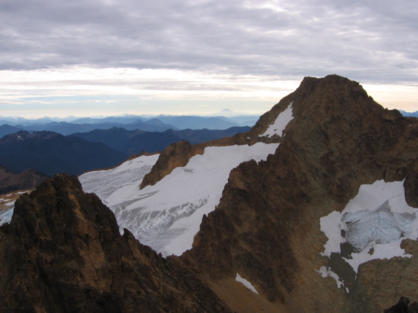 Twin Sisters Mountain is very unique in it's geology. All but the last sentence of the following paragraph is taken verbatim from Roadside Geology of Washington by David Alt and Donald Hyndman, pg 265: "Twin Sisters Mountain is one of the most extraordinary bodies of rock in the the country. The mountain, which is about 10 miles long and 3 miles wide, is a solid mass of an extremely rare rock called dunite, which consists almost entirely of the mineral olivine. Dunite properly belongs in the mantle, and is greatly out of place in a continent. The fresh rock is green, the color of olivine, but it weathers to the rusty brown color that makes the ragged top of Twin Sisters Mountains conspicuous from a great distance. This rock is solid and grippy, and great fun for climbing."