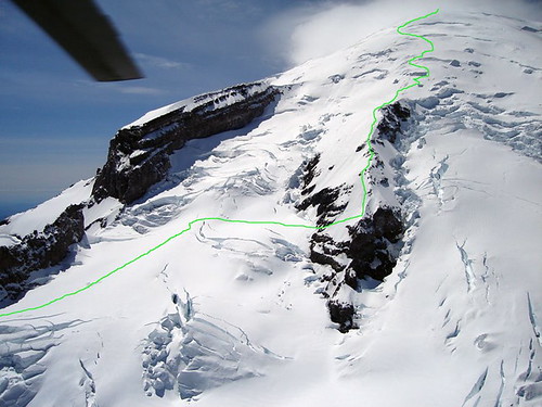 The descent for me was uneventful (with great views of Little Tahoma and Ingram Flats), but I took it carefully since I realized the danger of being unroped on glacier territory. But it was early in the season and there was only one small crevasse I had to cross....