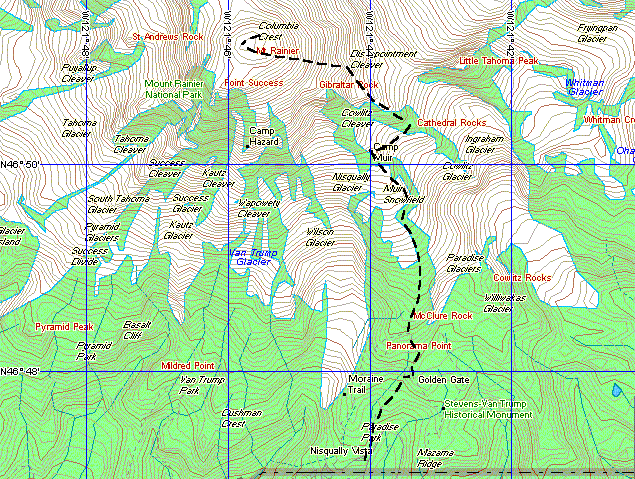 On June 17-18, 2006, I climbed Mt. Rainier (14,410 ft) in Washington with a couple of friends from school. We climbed the popular Disappointment Cleaver route. So far, 2006 had not seen too many successful summit attempts, with bad weather and poor conditions stopping many climbing parties. But we had planned this climb for awhile, and the weather looked like it might be turning for the better.