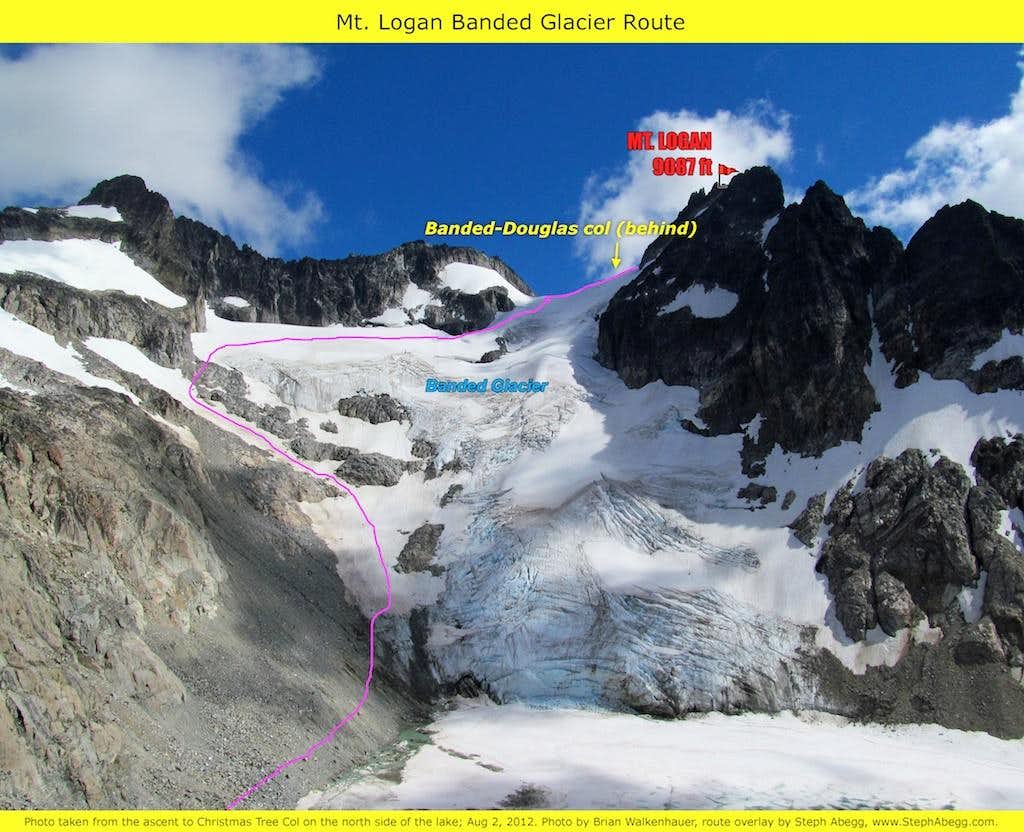 Our plan was to descend the Banded Glacier. (We had a few reasons for wanting to descend the Banded instead of the more-typical Douglas Glacier: (1) we had heard tales about 'schrunds and 'schwacking on the Douglas Glacier route (although I've since been told that the Douglas Glacier approach is easy and the 'schwacking is "not too bad", so I'm not sure what to think other than to go in and see for myself!), (2) thanks to a helpful friend we had some great beta for the Banded Glacier that made it seem rather straightforward if we nailed the route, and (3) the Banded Glacier just sounded like wild and spectacular terrain.)