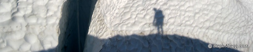 Interesting note: Less than a week after our trip, another party was crossing this snow bridge when it collapsed between them (here's the link to their TR on CascadeClimbers.com). Fortunately, they were okay, besides the fact that one of the guys was above the 'scrhund and the other was below.....
