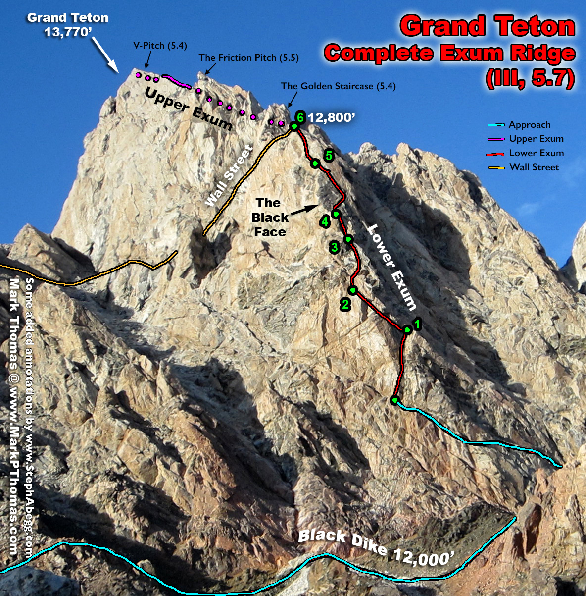 Complete Exum in 2012 (trip report at bottom of this page), but Jenny had never climbed it. (For terminology: The