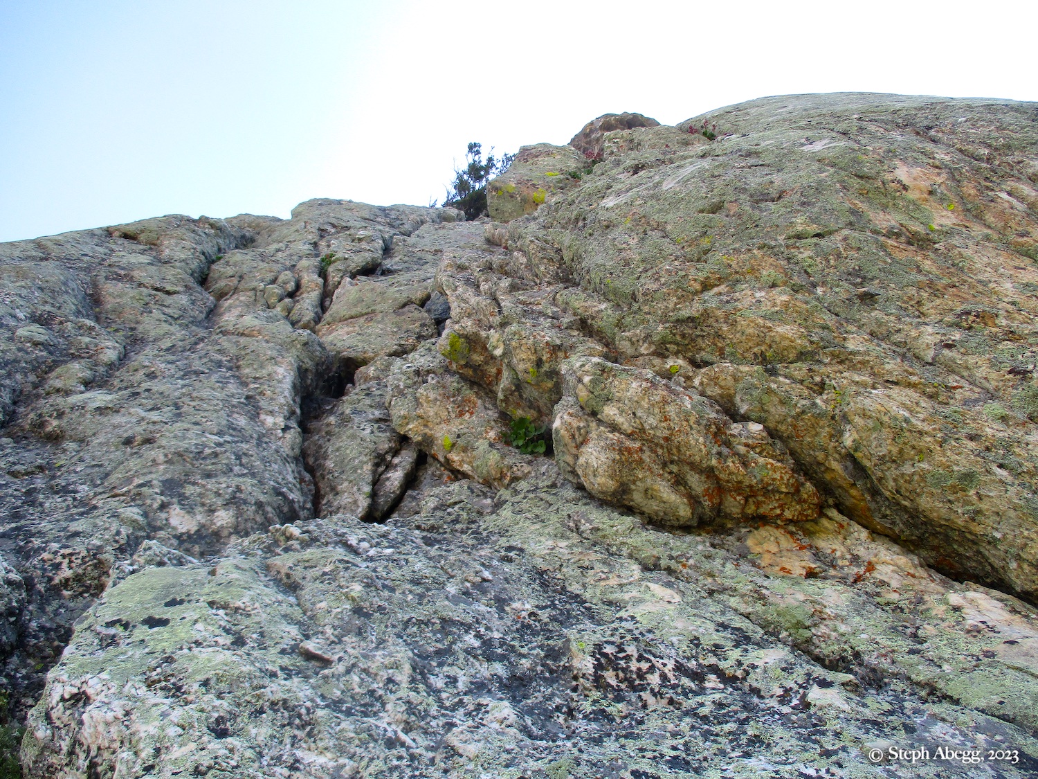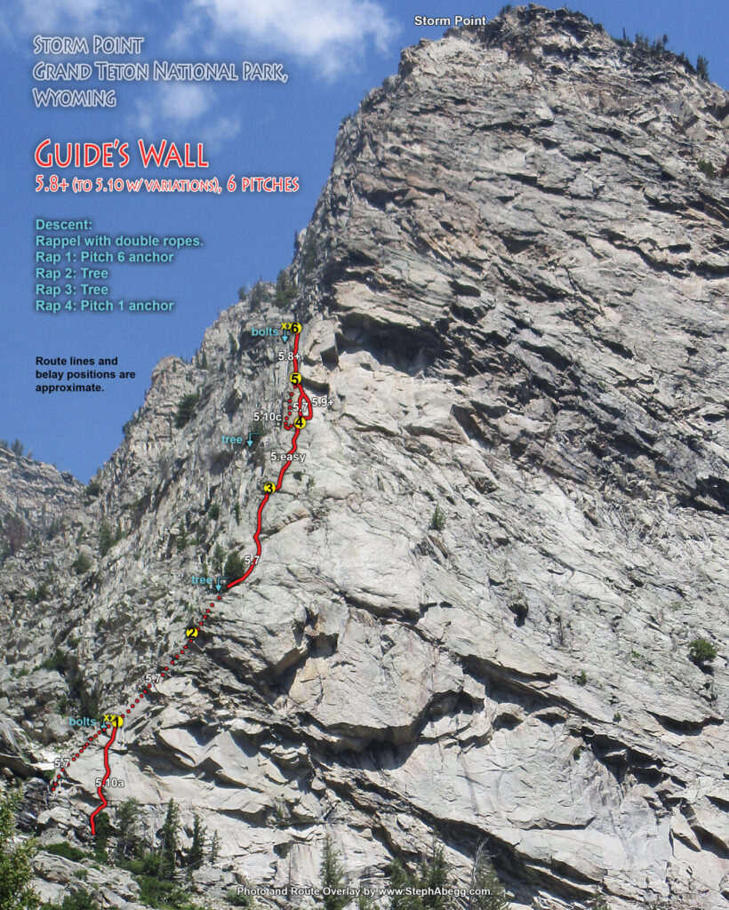 Guide's Wall (5.8+to 5.10, 6p) on Storm Point (Thursday),