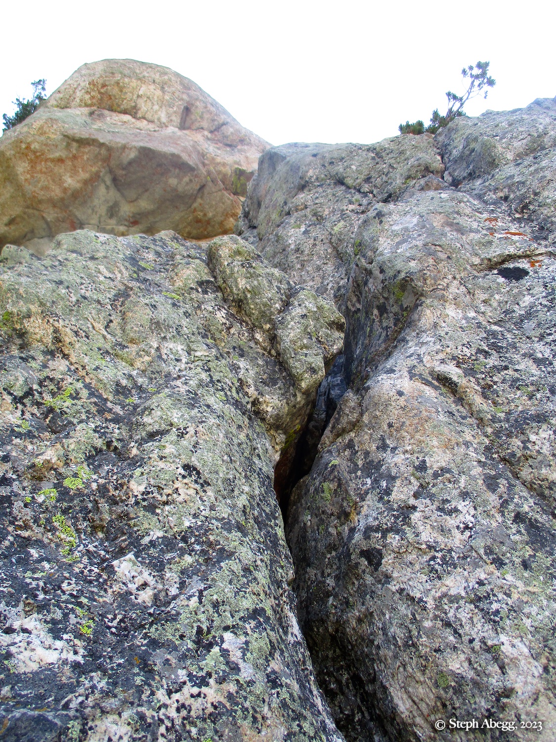This was a fun first route of the trip. Erin and I climbed the route as four pitches, linking Pitches 1+2 and Pitches 3+4. It was still before noon when we finished the route. We decided we needed to add some more climbing to the day, so we explored a couple of the popular route variations: after making the first rappel, we traversed back over to the base of Pitch 5 and climbed back up to the top of the route via the excellent 5.9+ splitter variation on Pitch 5; and after rappeling back to the base, we toproped the 5.10a roof/flake variation for Pitch 1. So, all told, we climbed 9 pitches (ignoring the linking). We arrived back at the trailhead by mid-afternoon, with plenty of time to write the trip report (me), explroe Jackson (Erin), enjoy and evening at camp, and prepare for our bigger climb the following day.